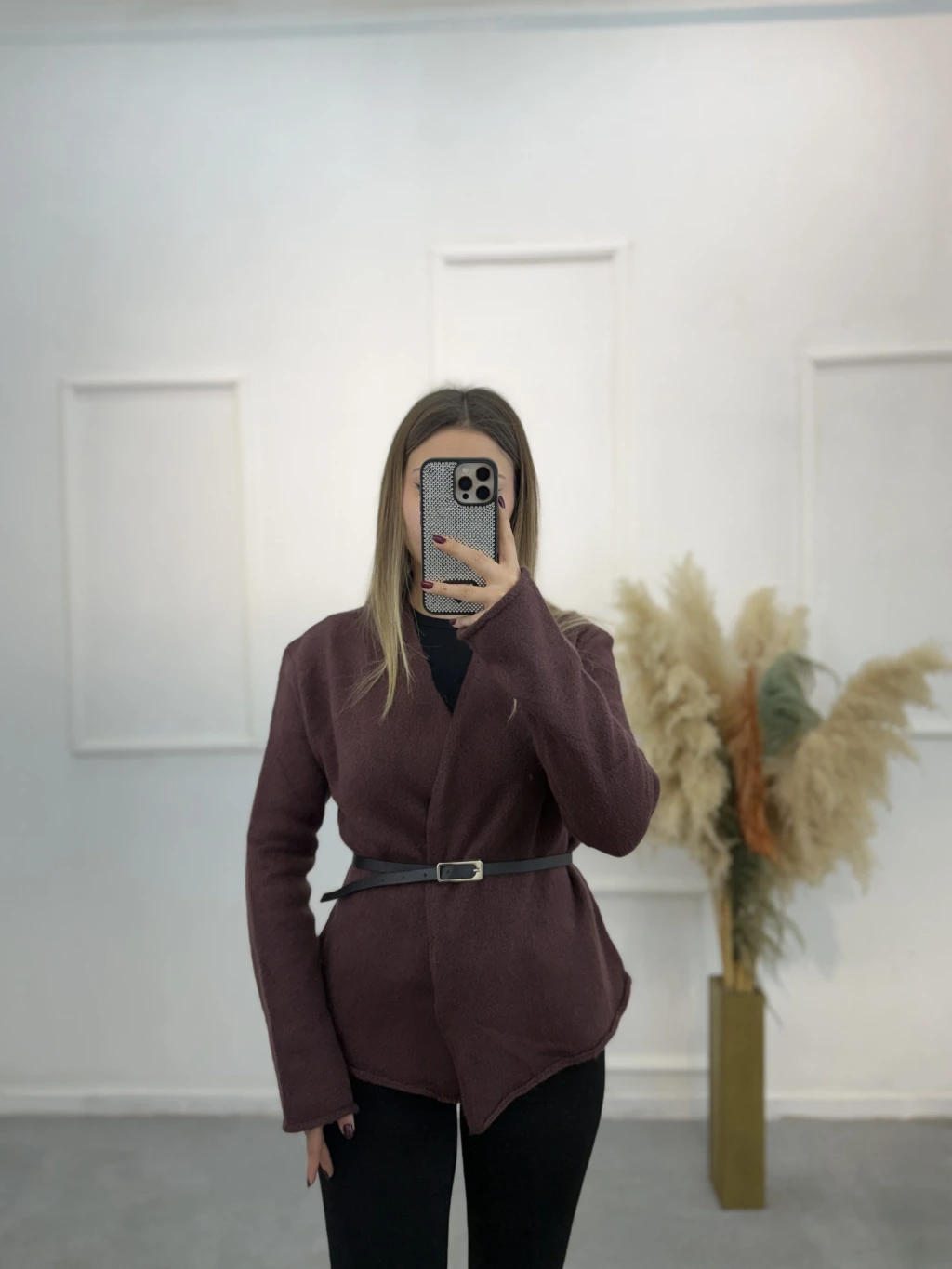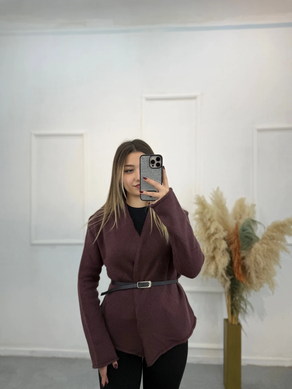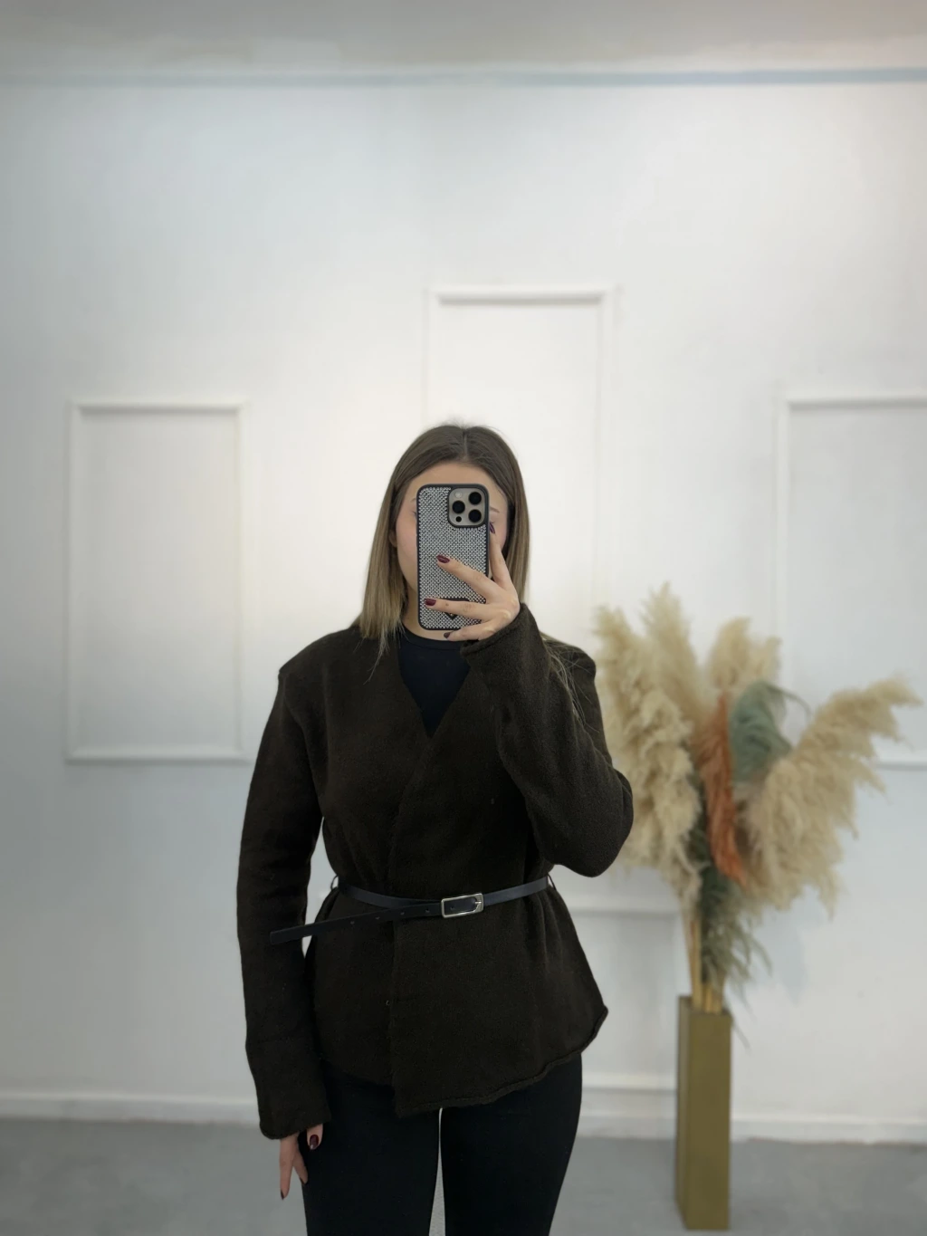 Agela Deri Kemerli Triko Hırka