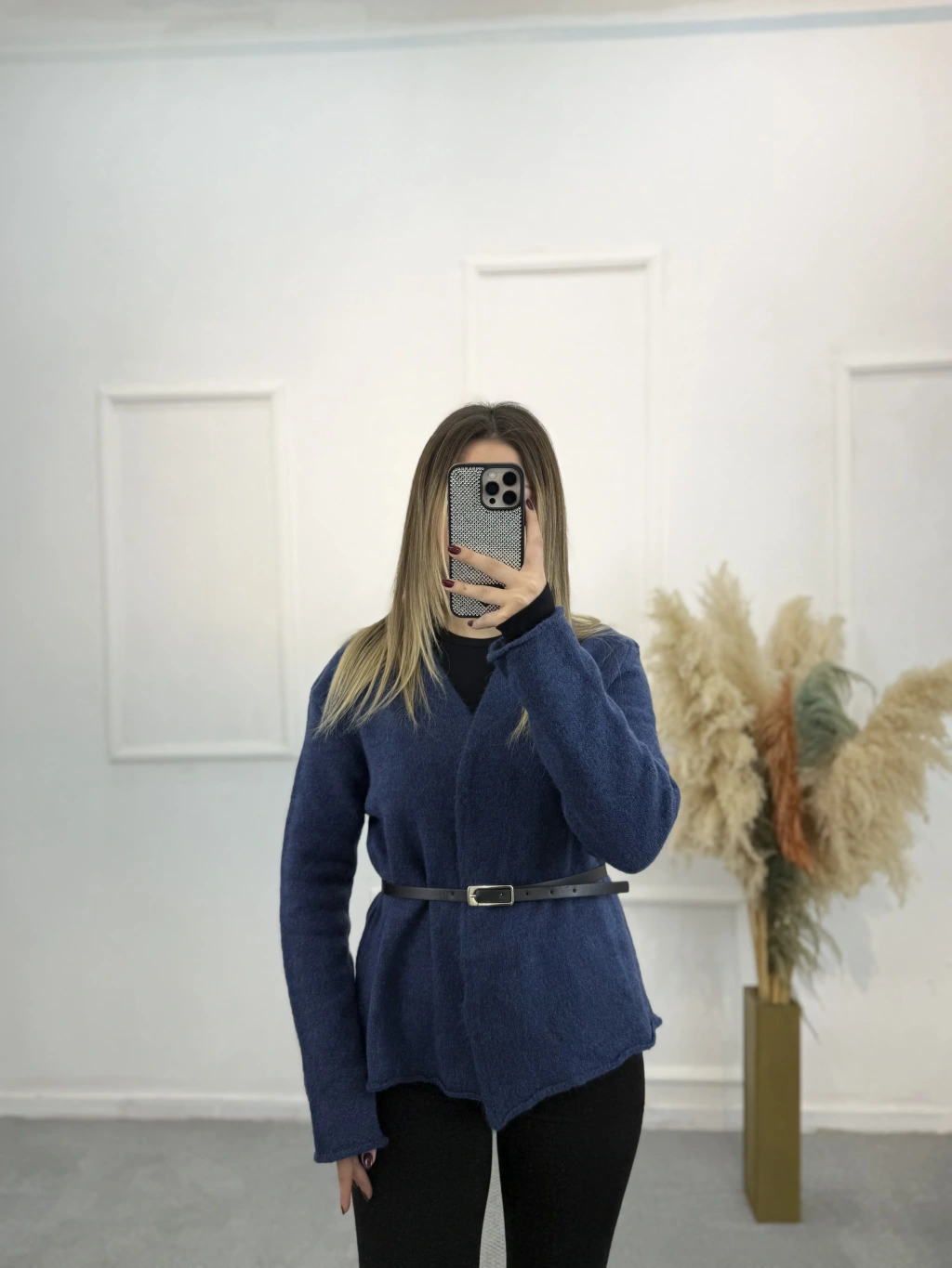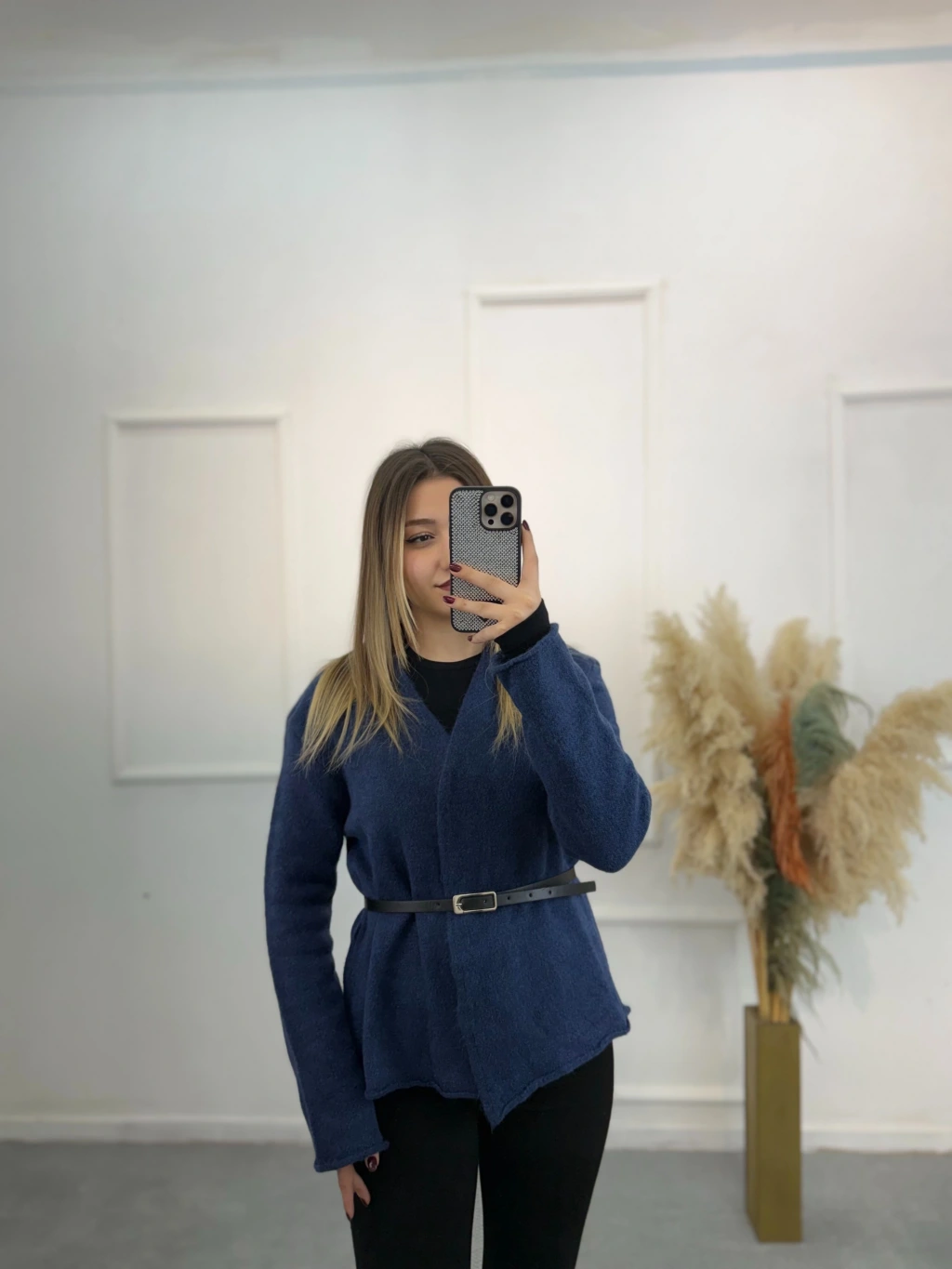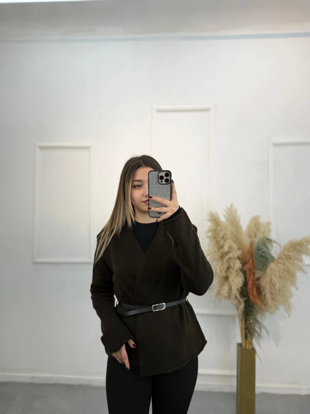 Agela Deri Kemerli Triko Hırka