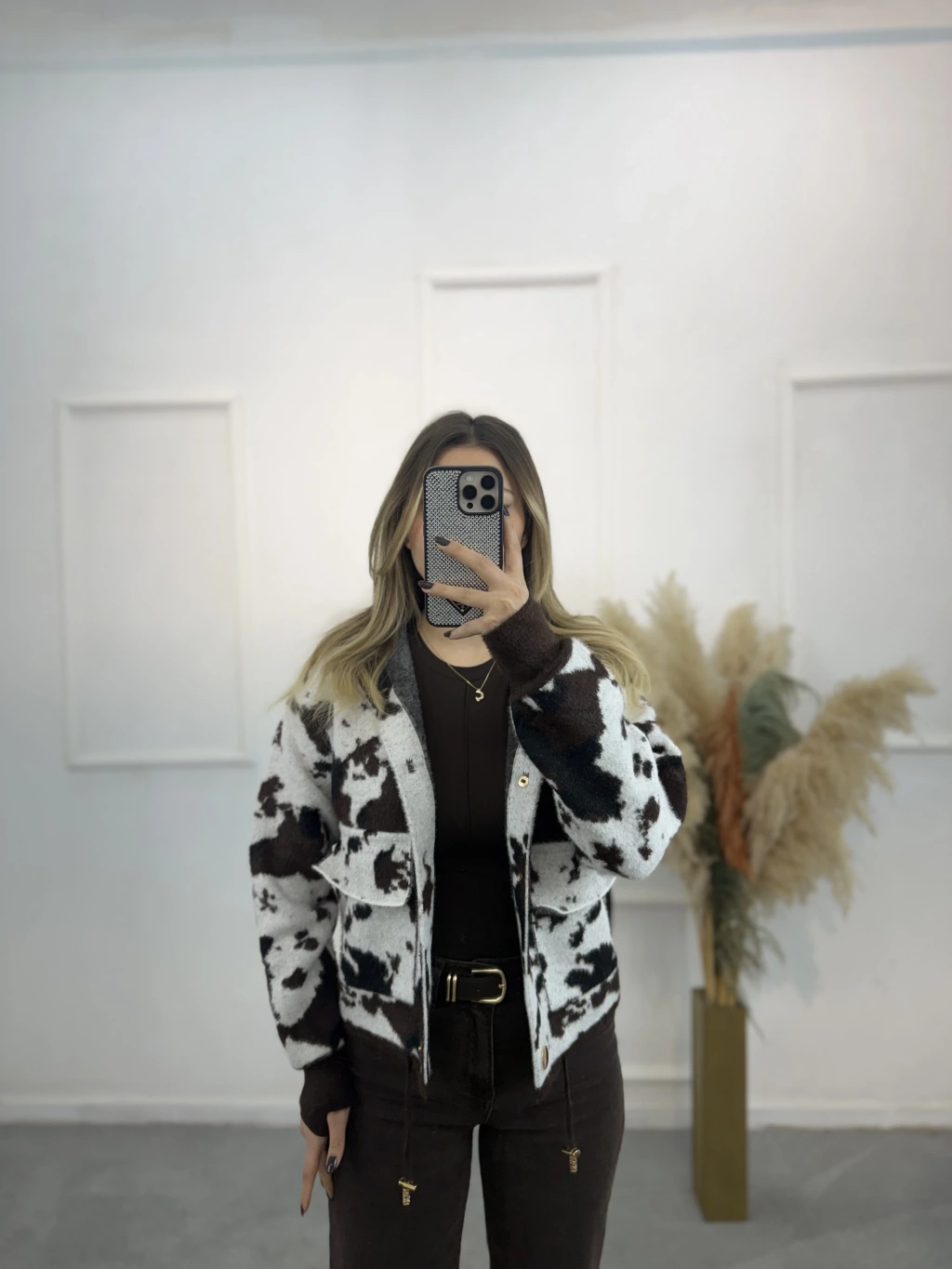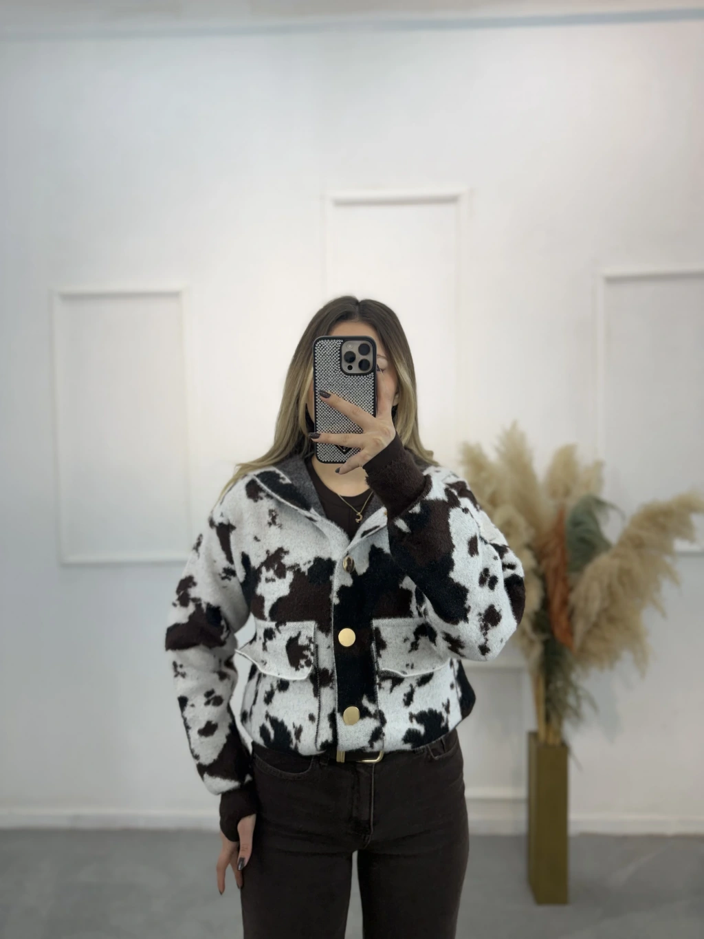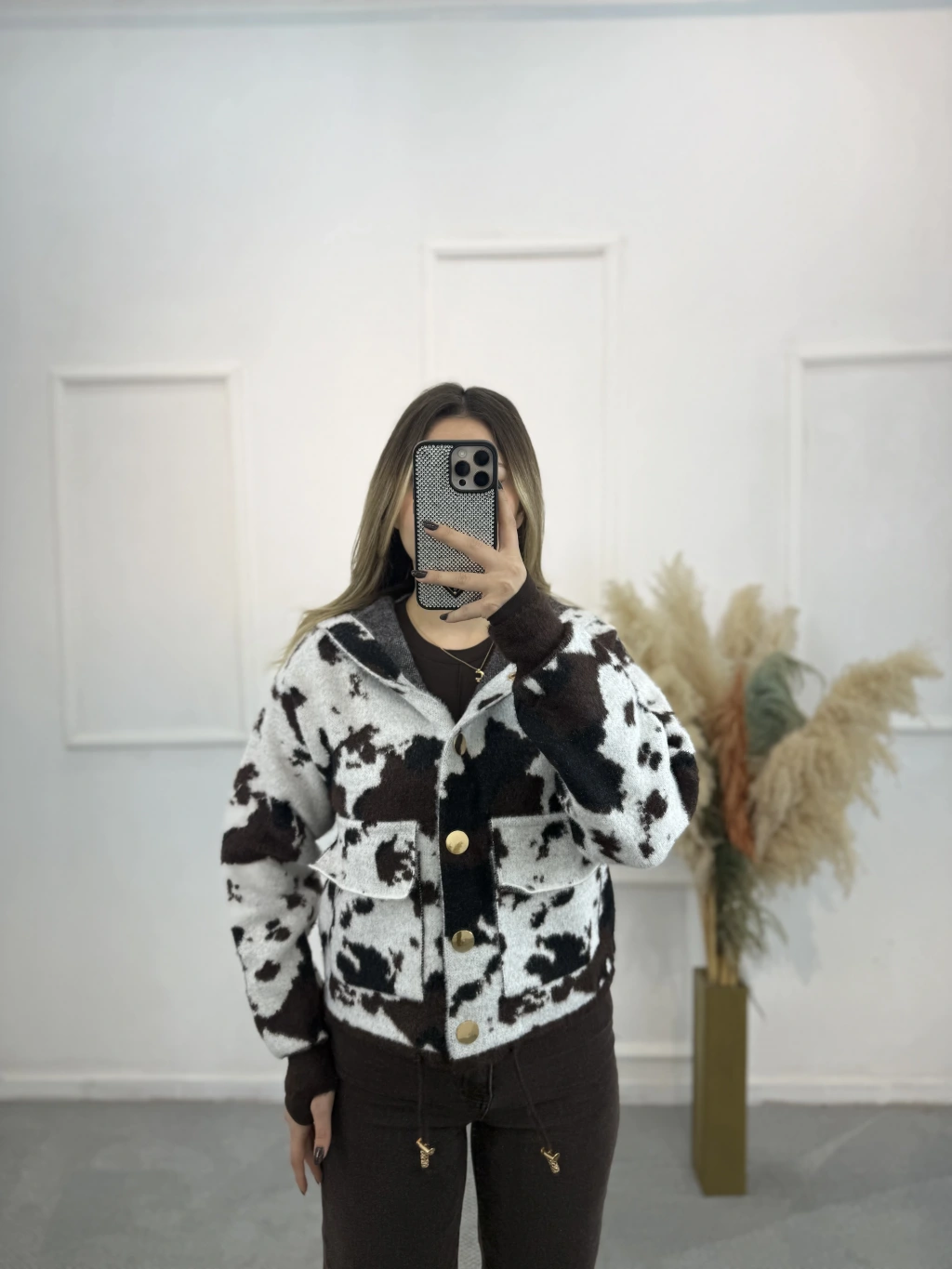Angora Desenli Kapişonlu Çıtçıt Hırka