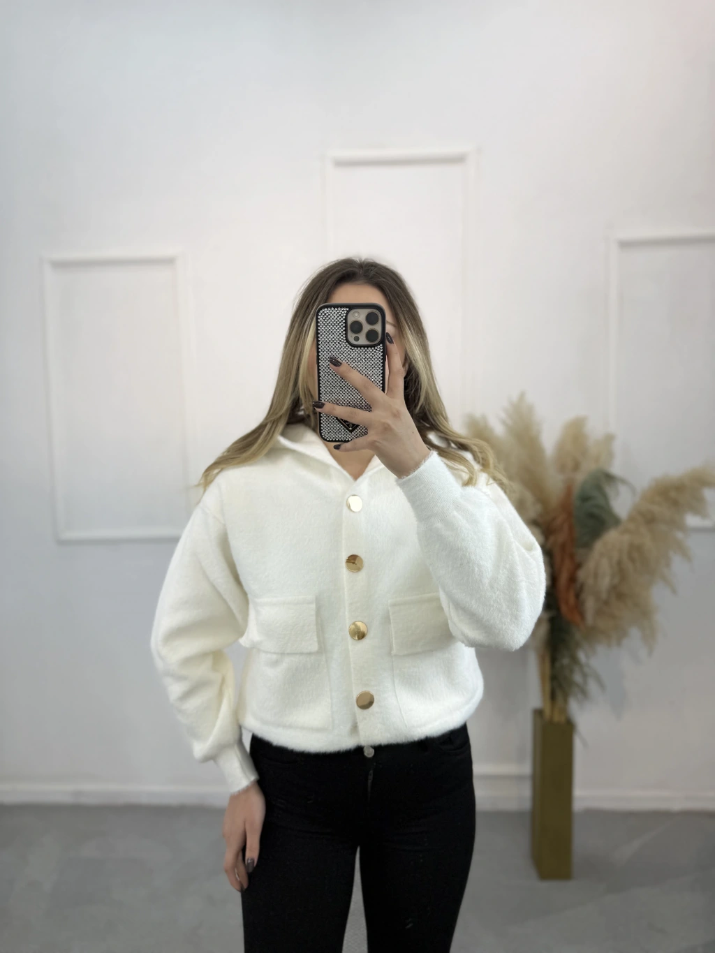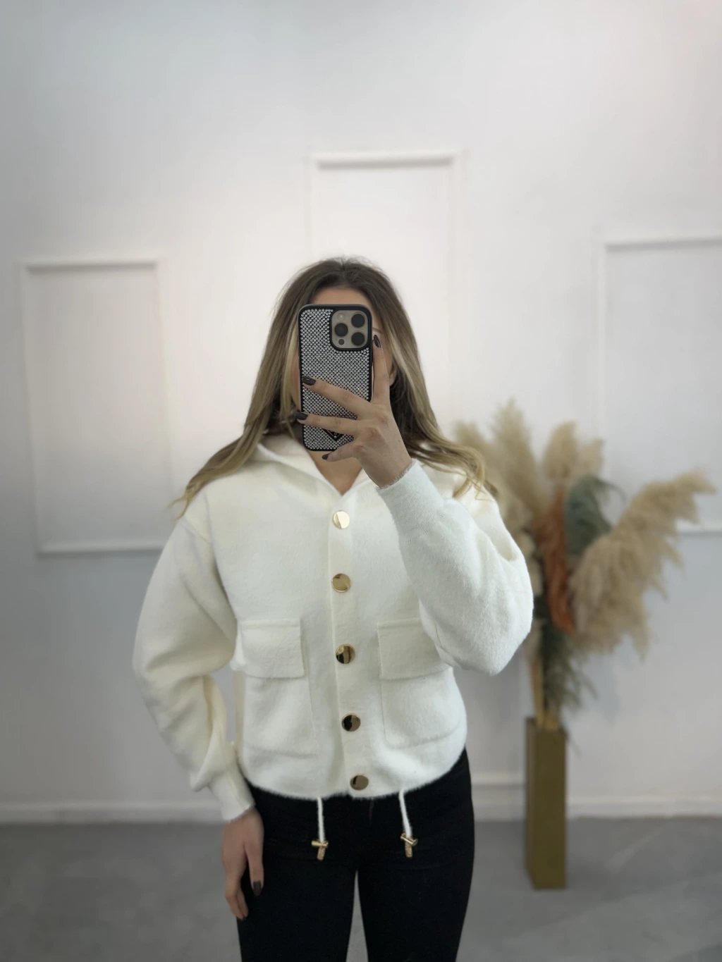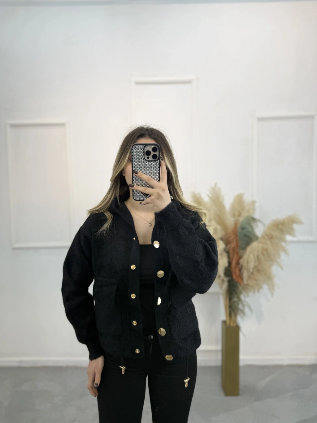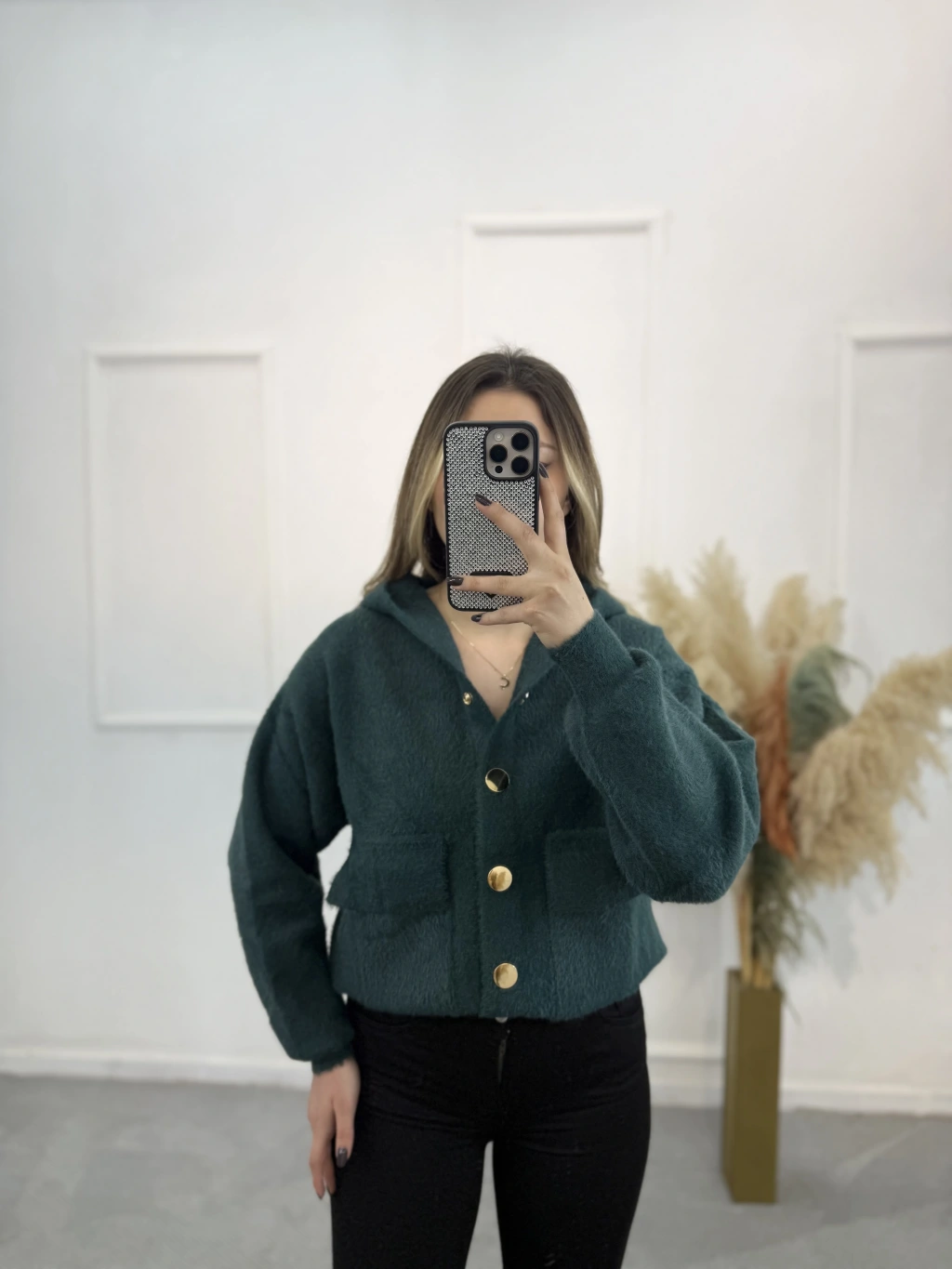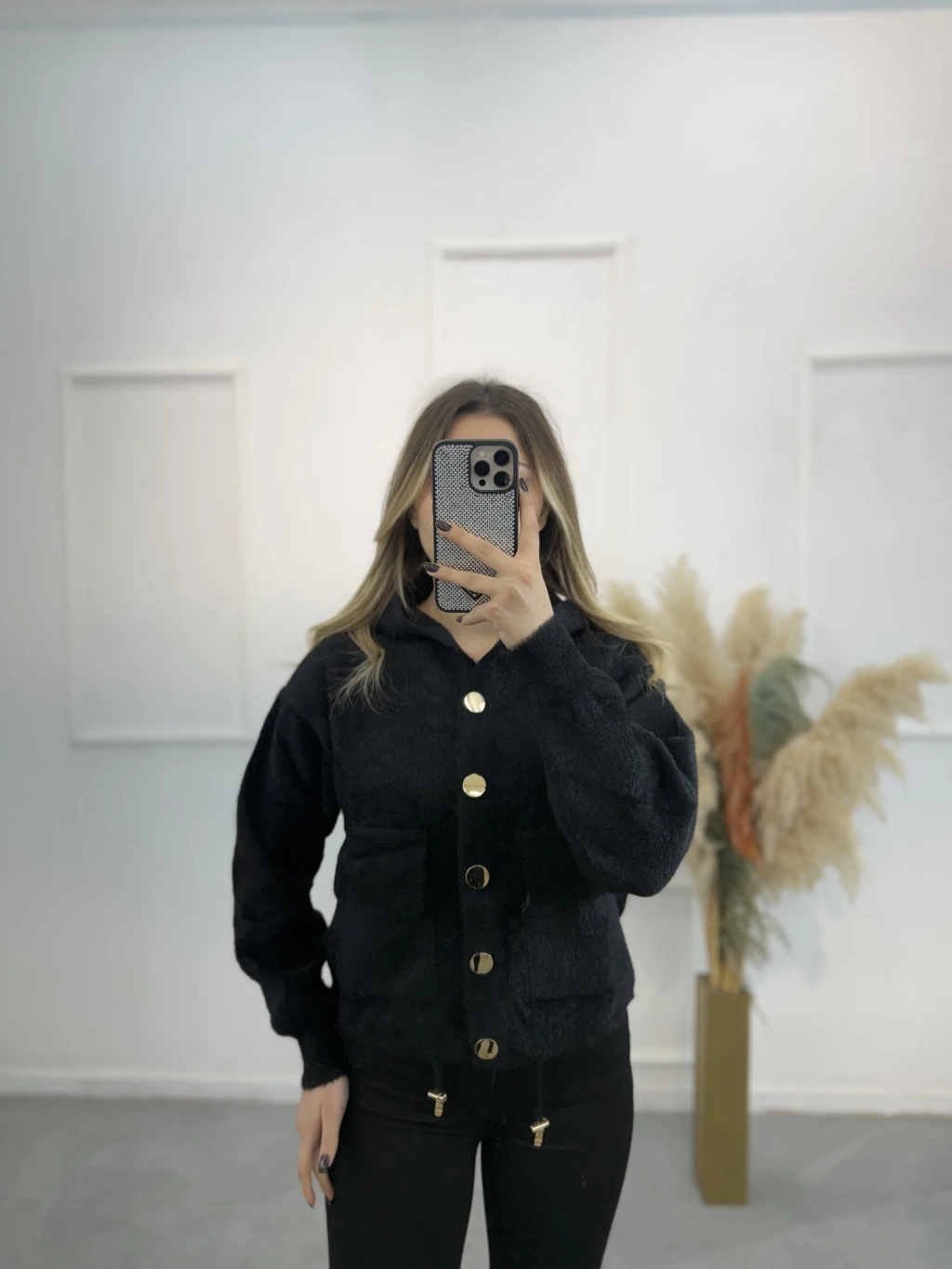 Angora Kapişonlu Düğmeli Hırka