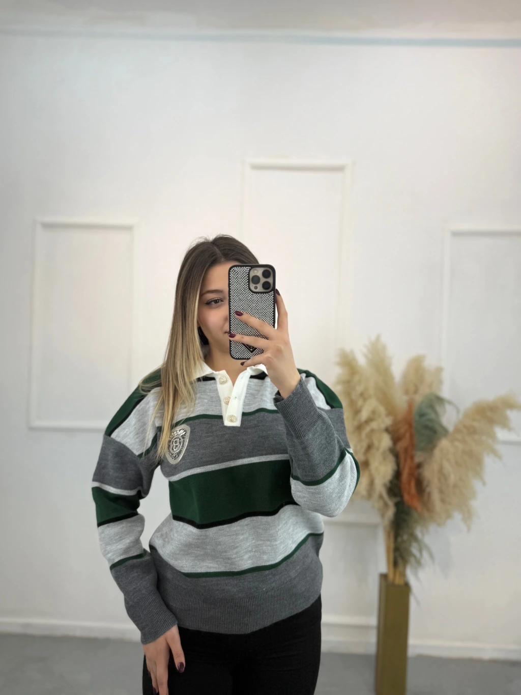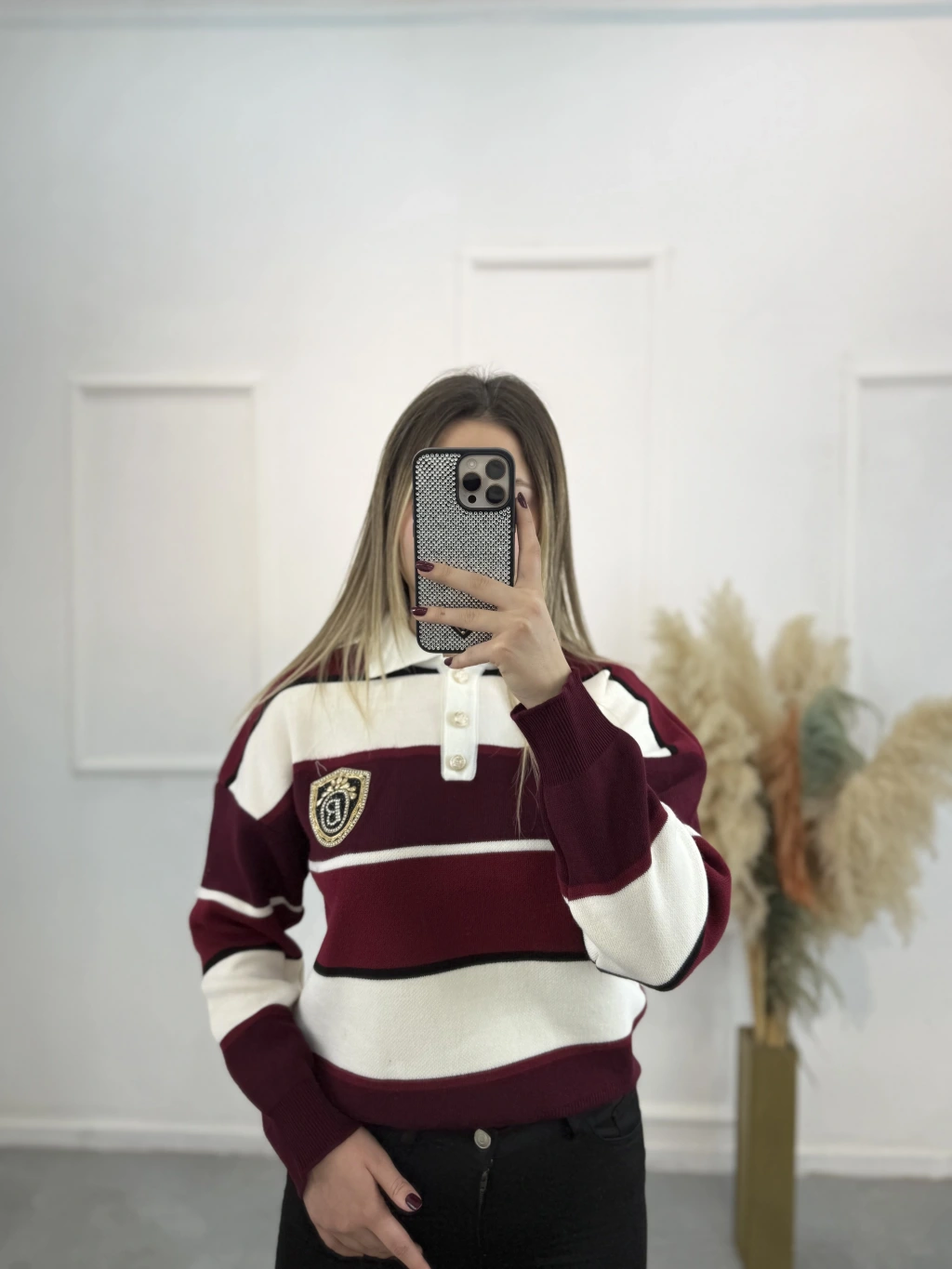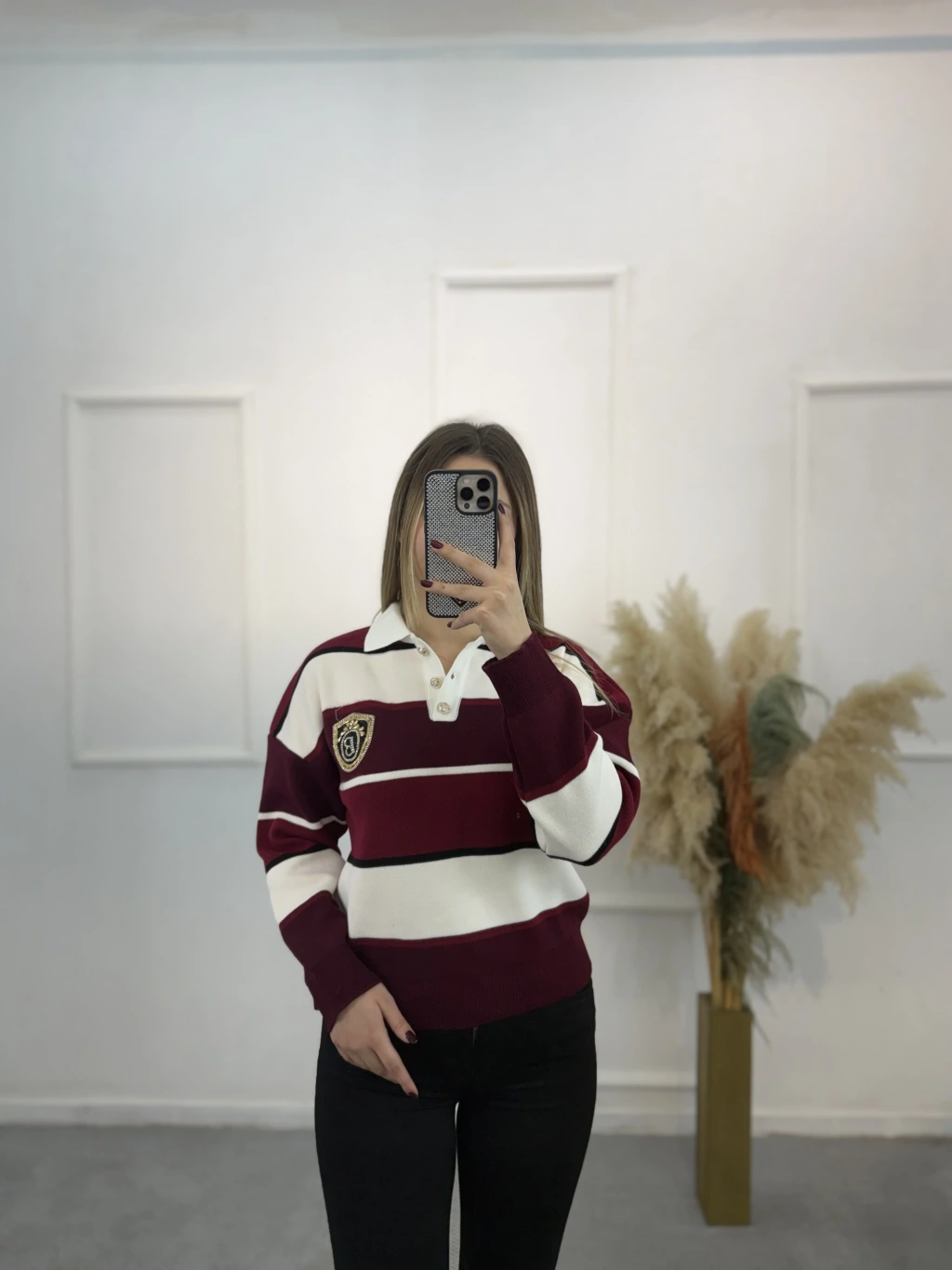 Bymn B Taşlı Kalın Çizgili Tiriko Kazak