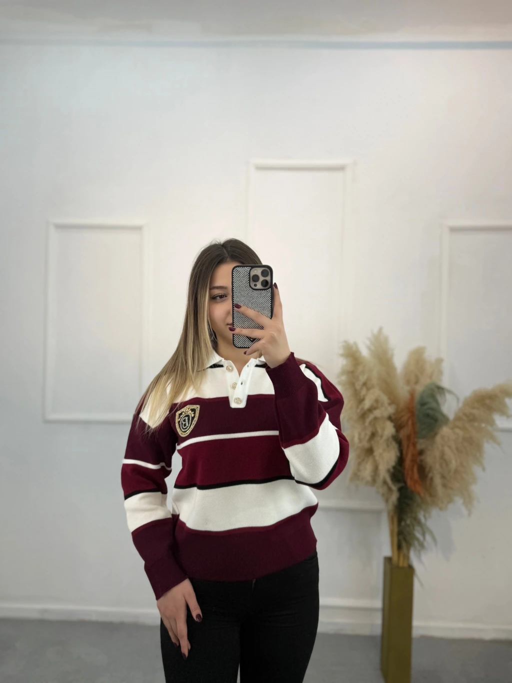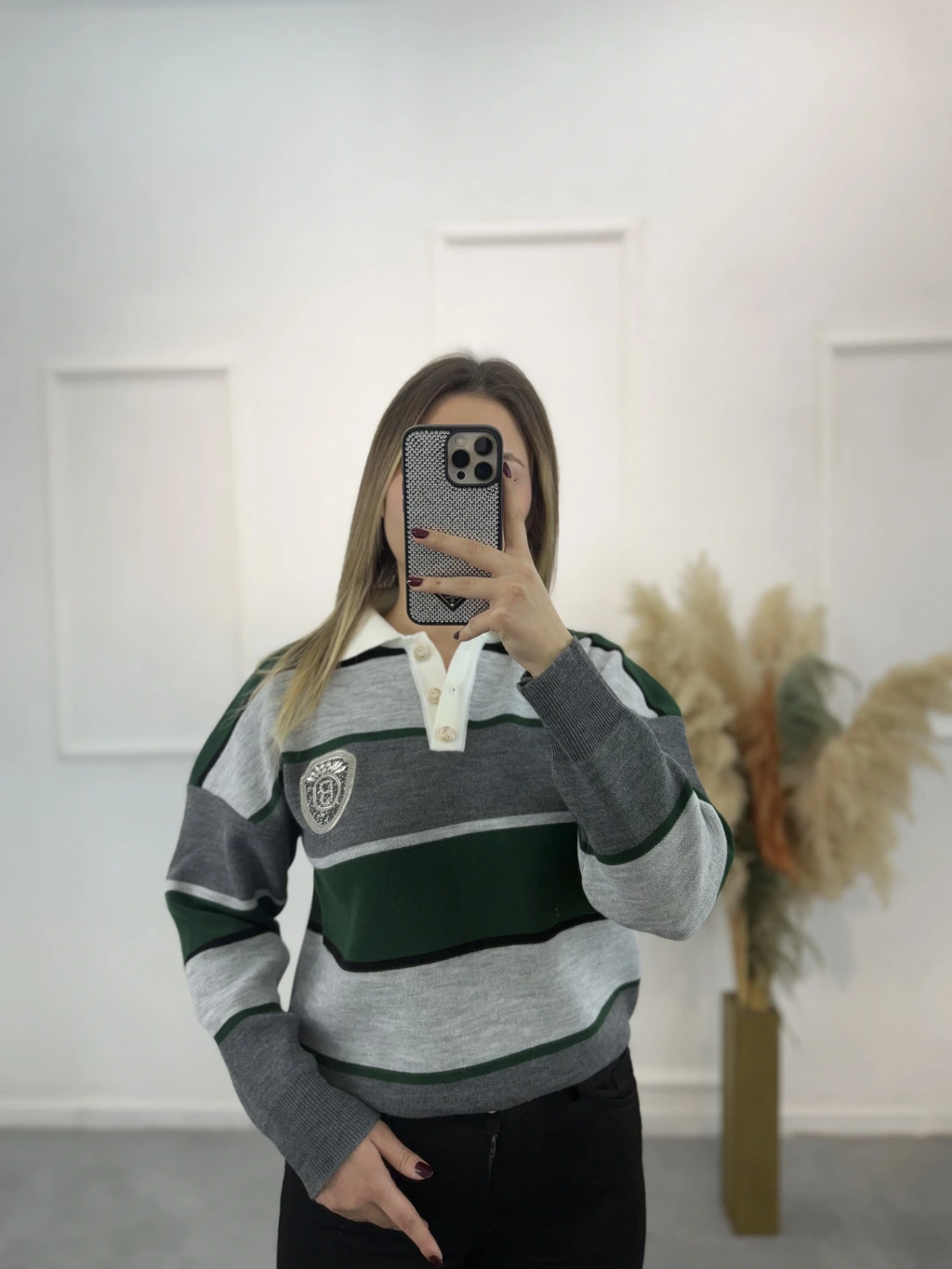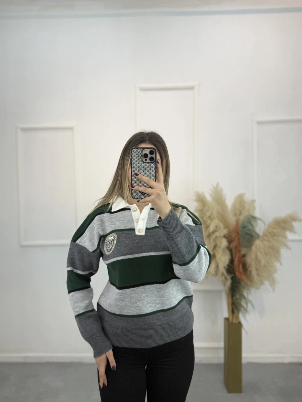 Bymn B Taşlı Kalın Çizgili Tiriko Kazak