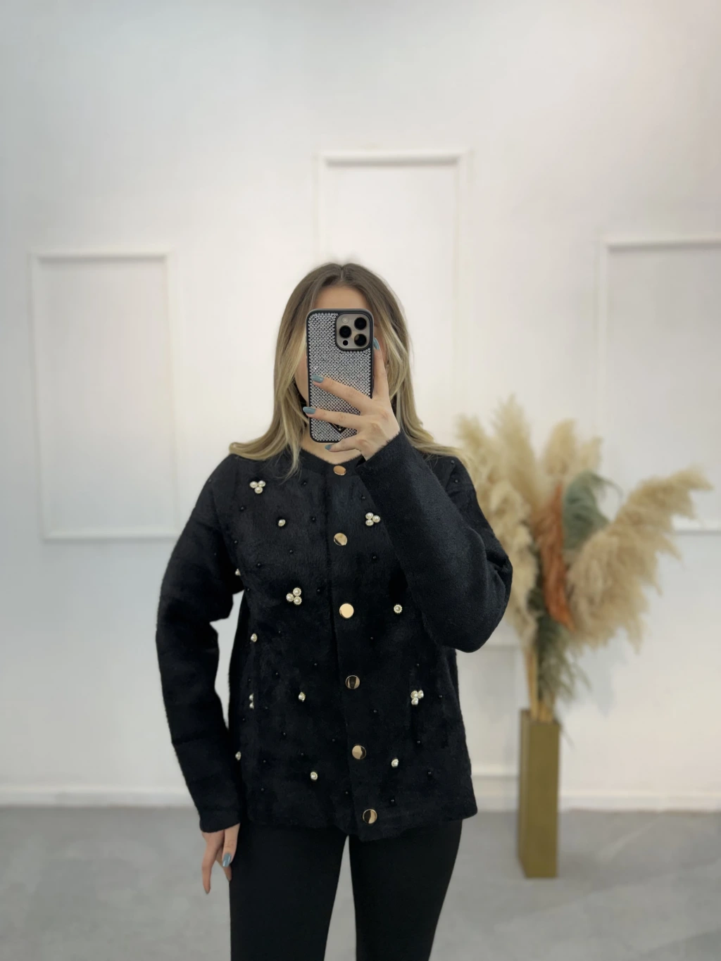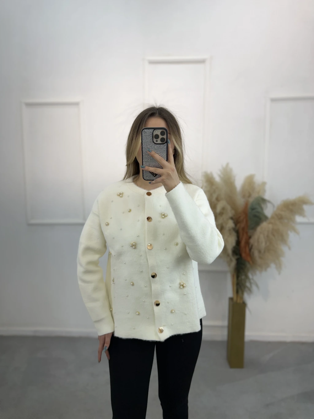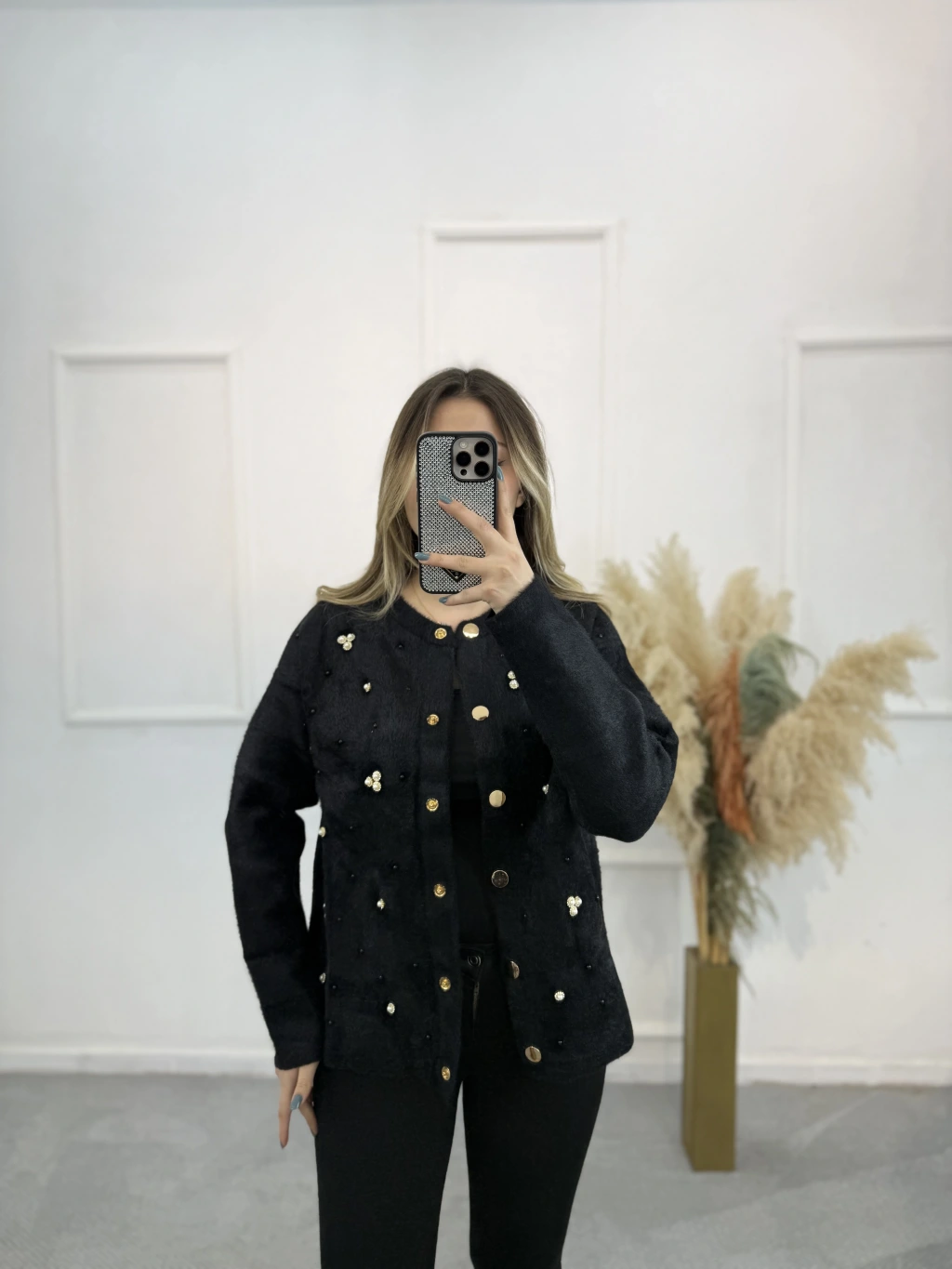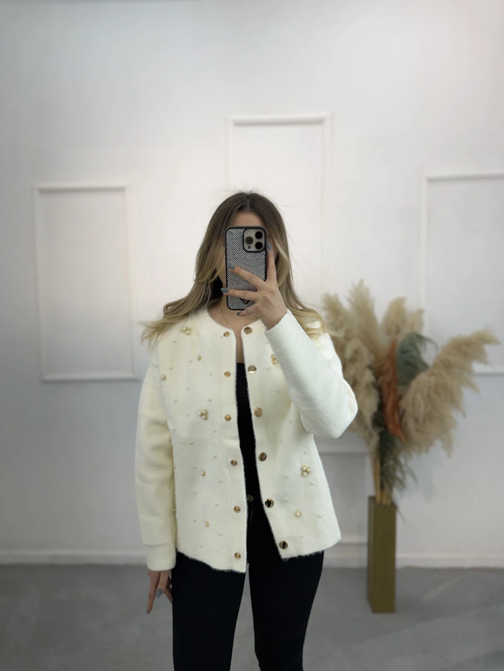 Cell Angora İnci Ve Taş Detaylı Hırka
