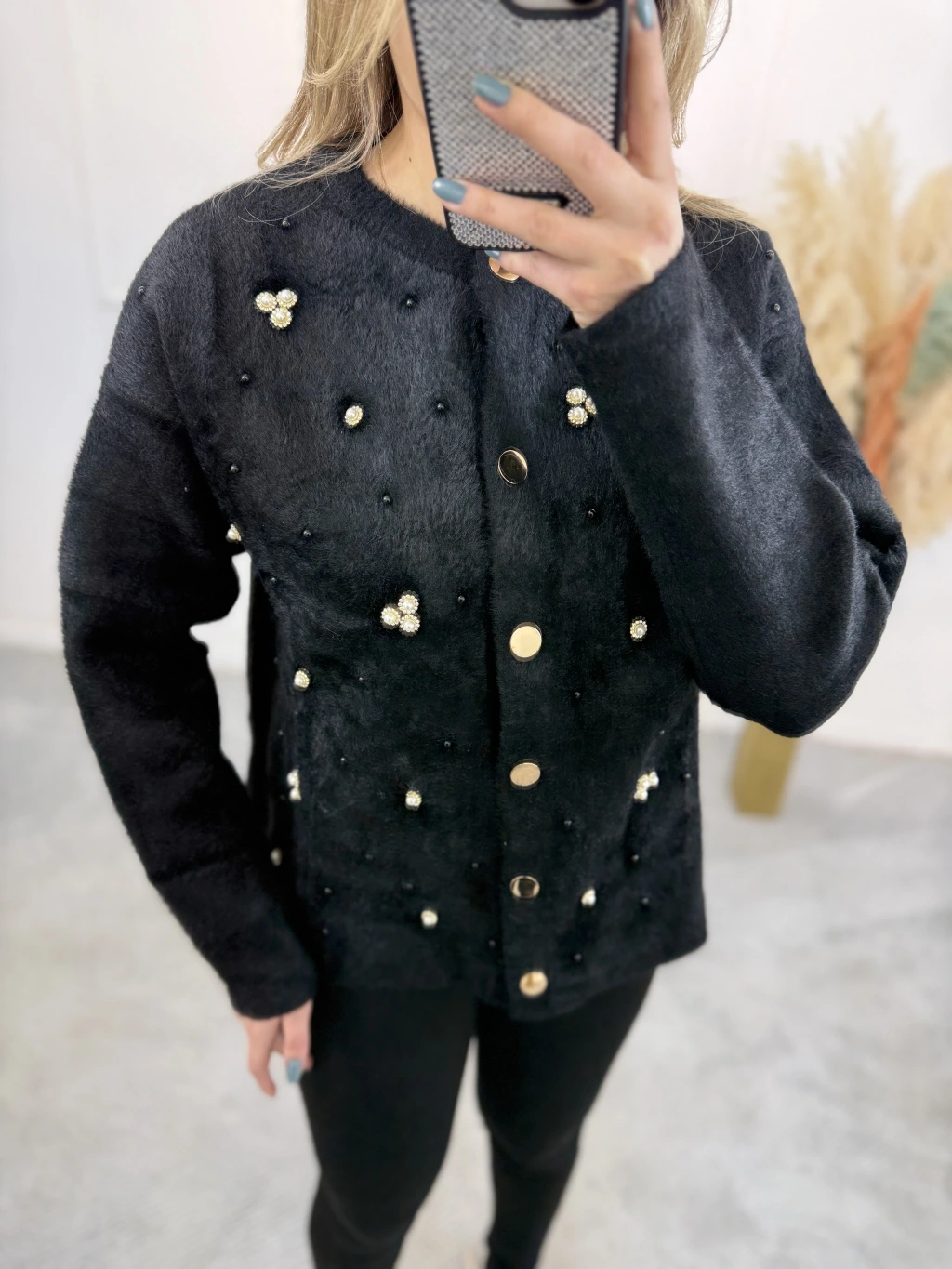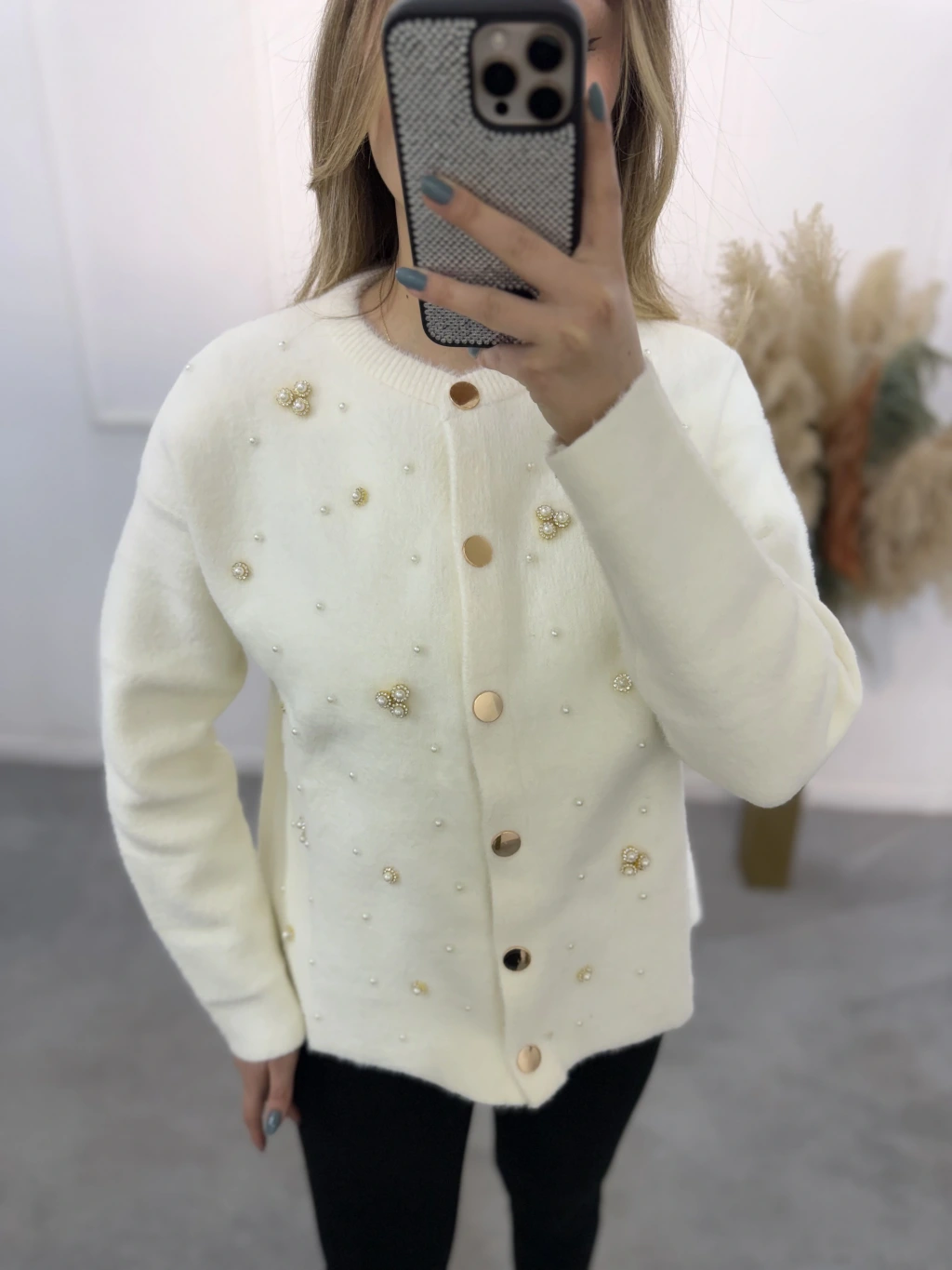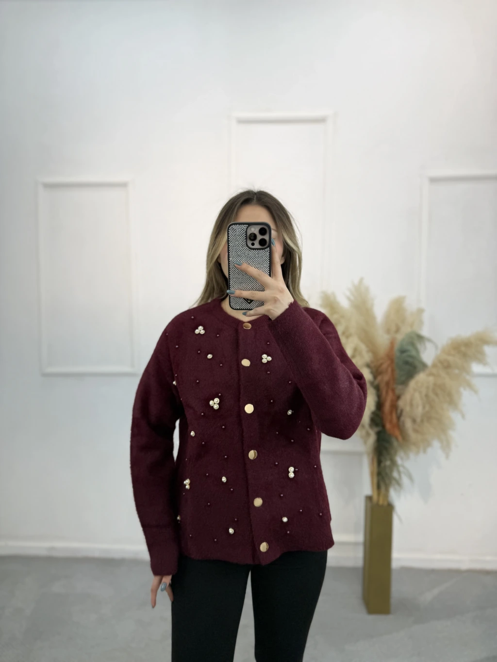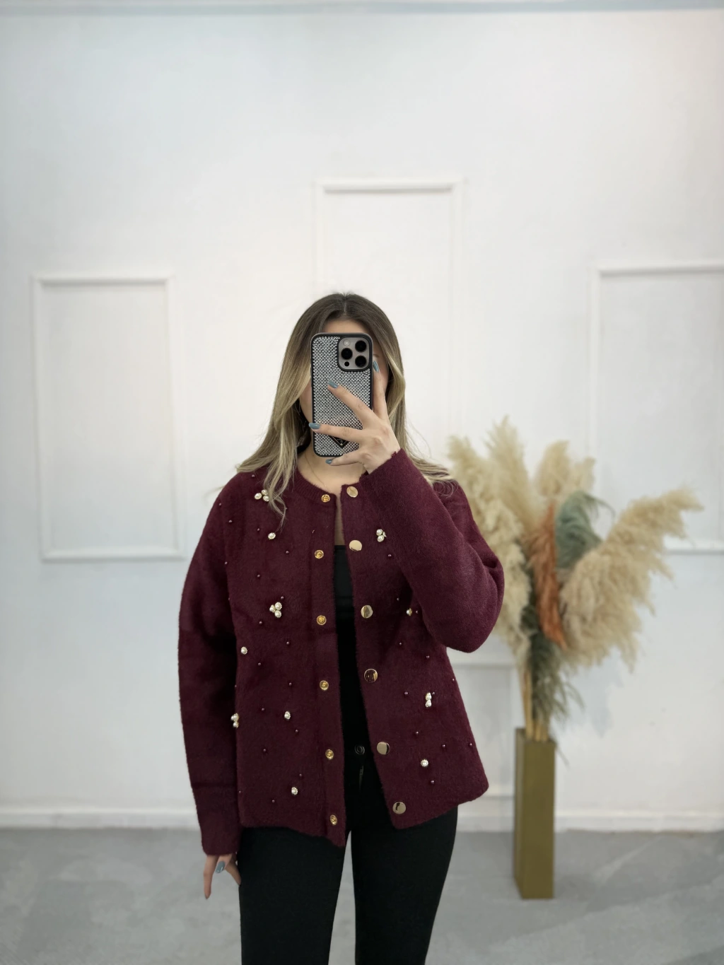 Cell Angora İnci Ve Taş Detaylı Hırka