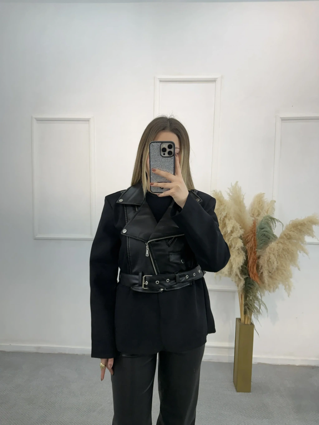 Deri Garnili Blazer Ceket