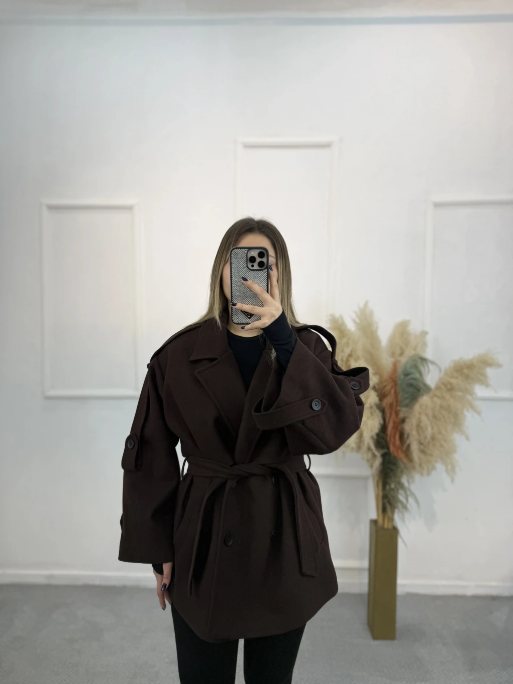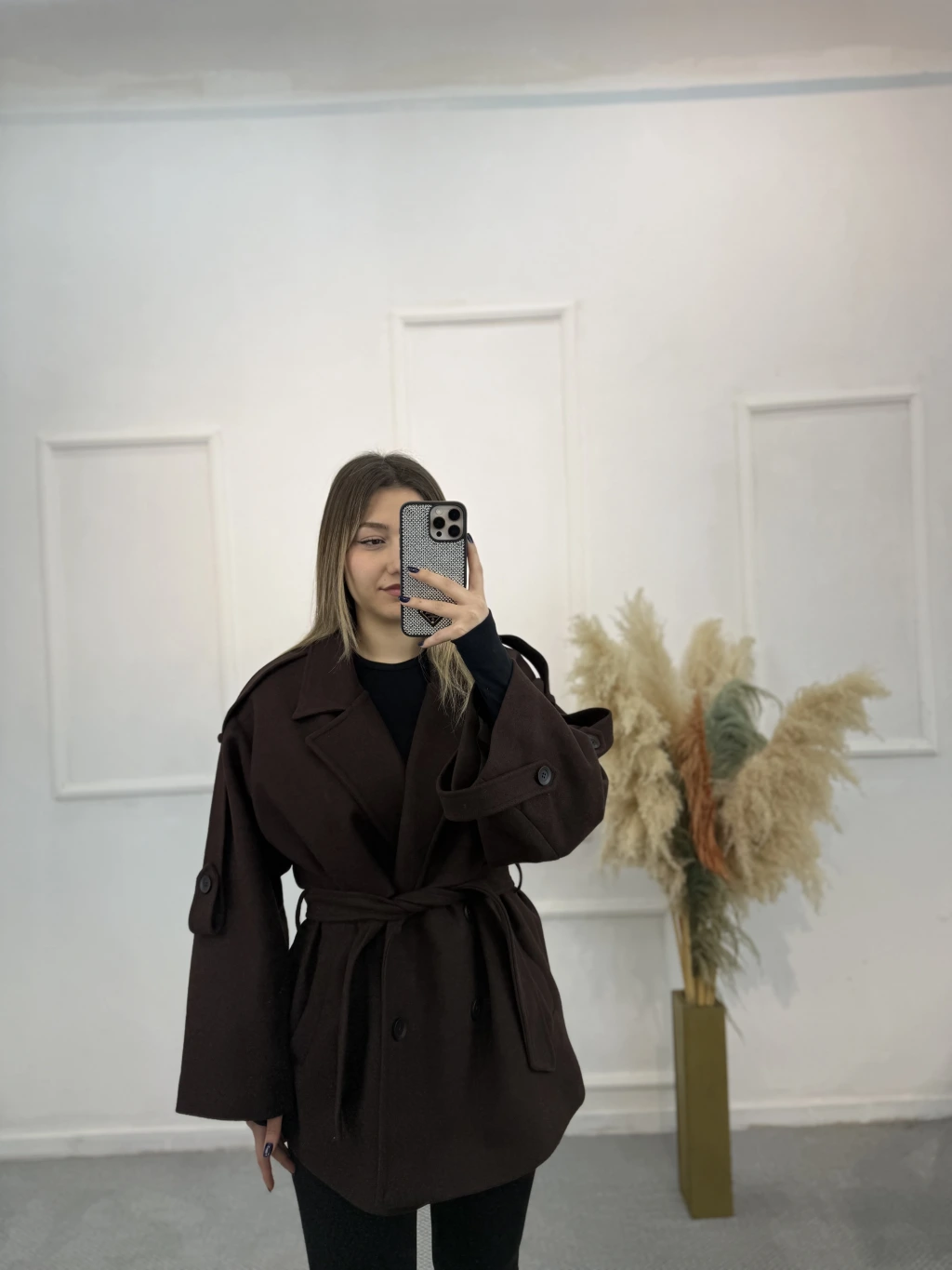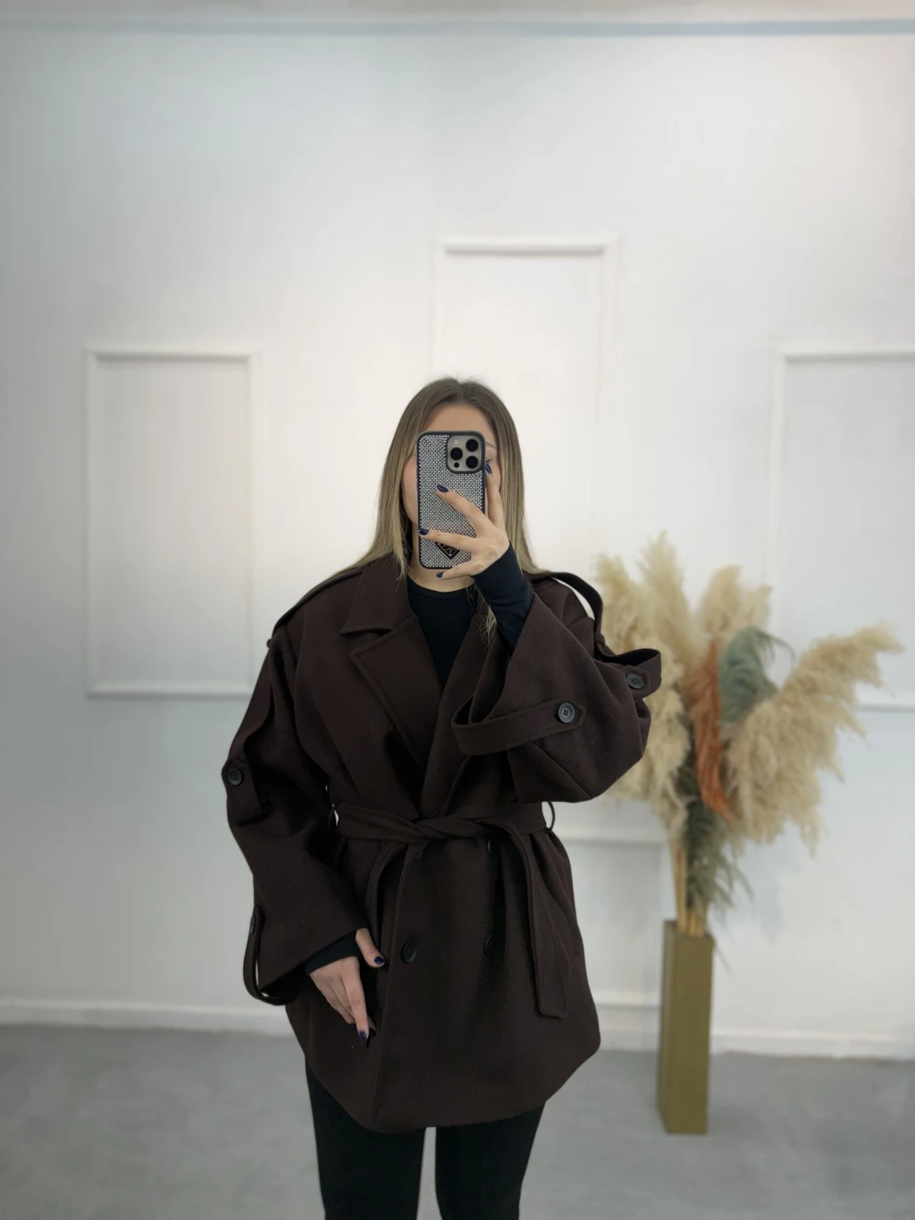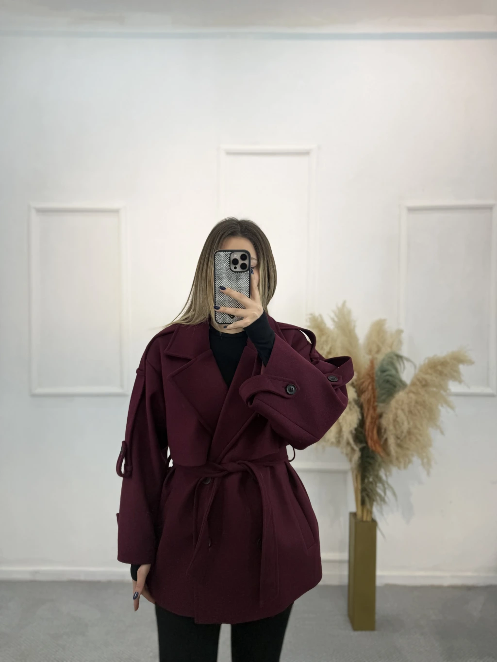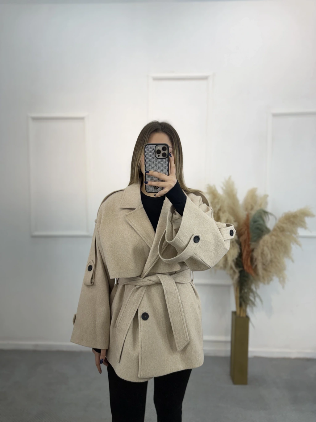 Duma Sırt Detaylı Kuşaklı Kaşe Kaban