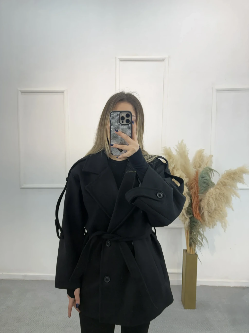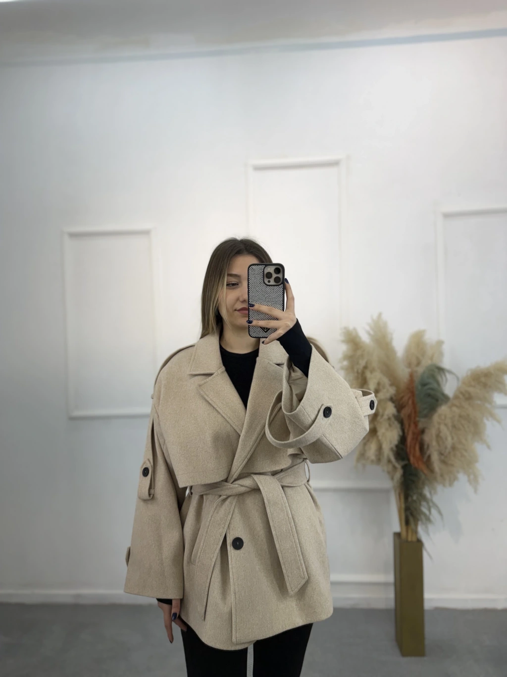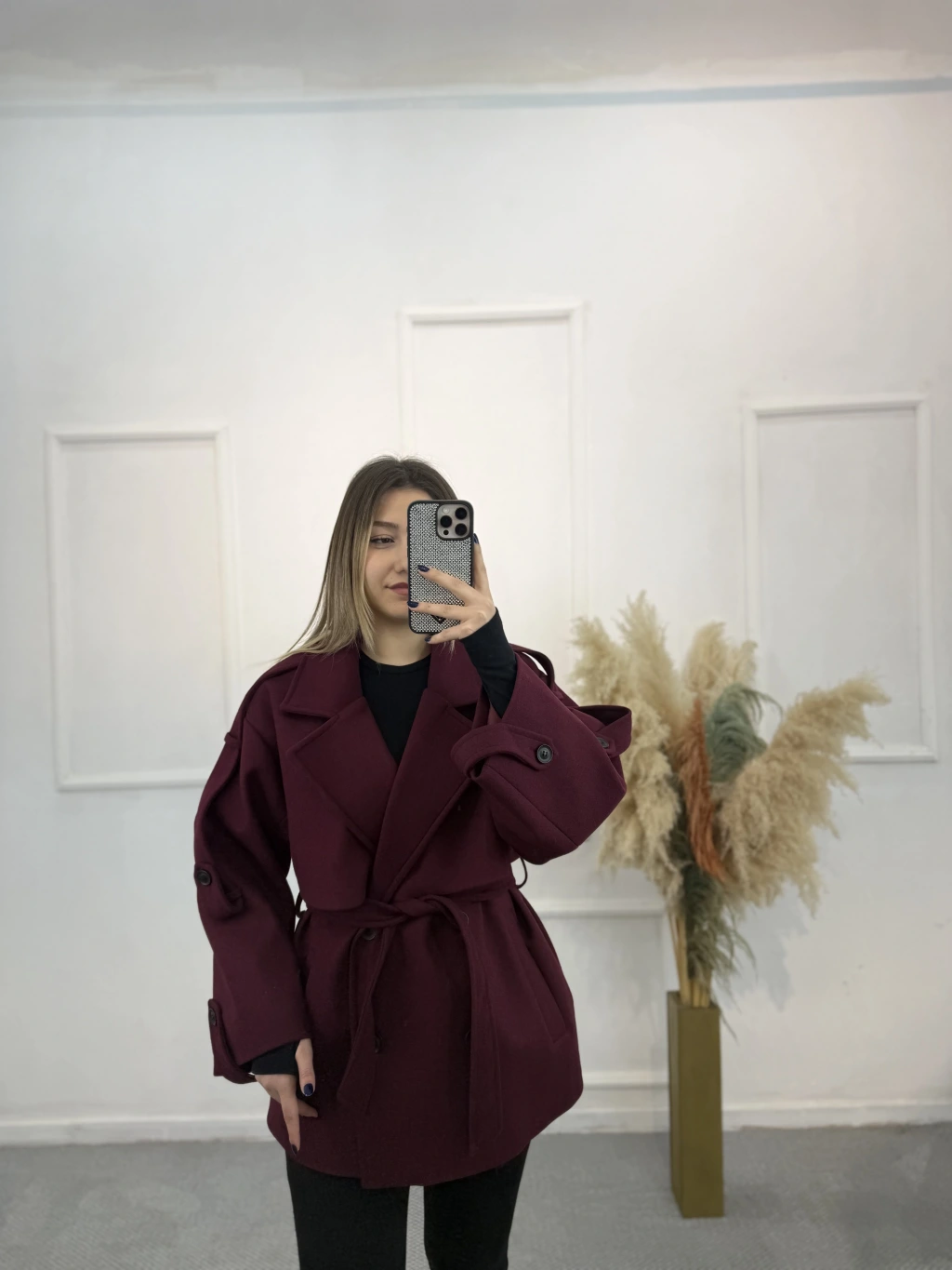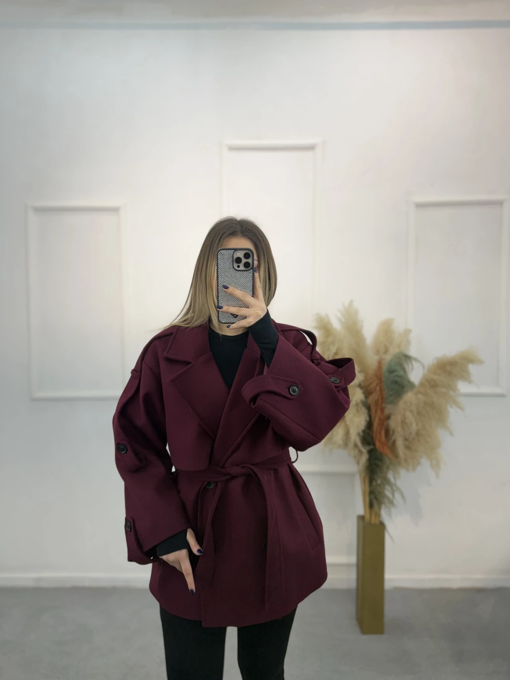 Duma Sırt Detaylı Kuşaklı Kaşe Kaban