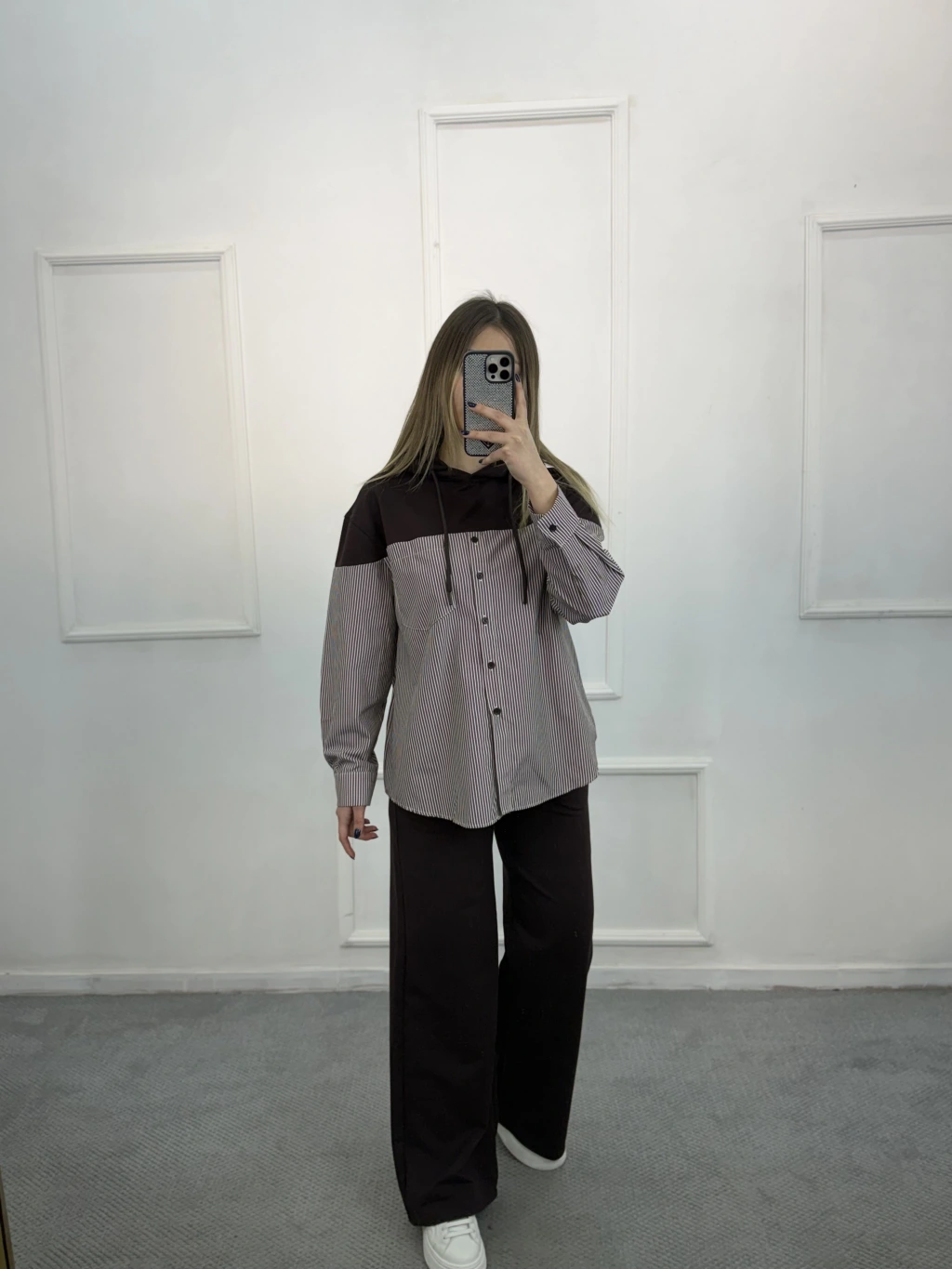 Larva Gömlek Garnili Kapişonlu İkili Takım