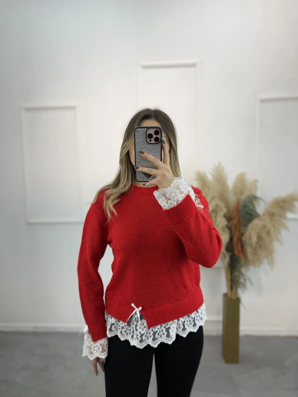Lilt Kol Ve Etek Ucu Dantelli Kazak