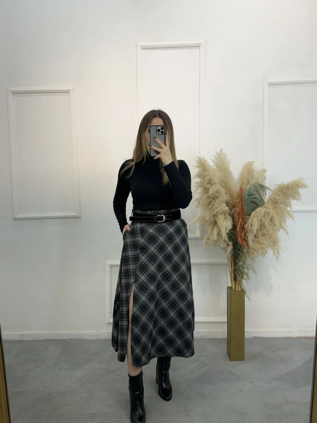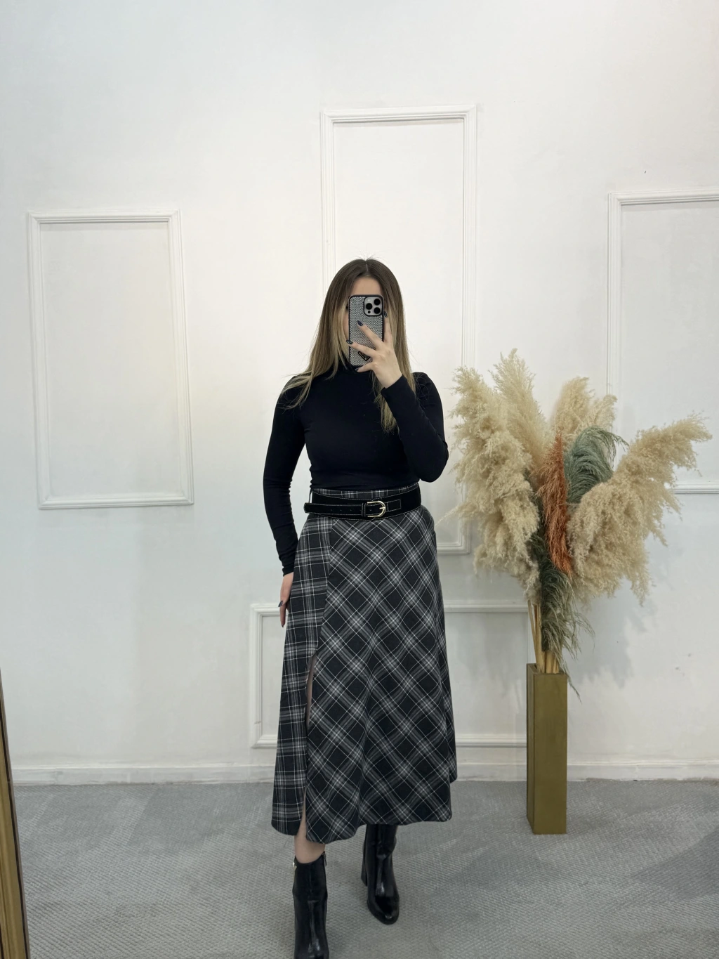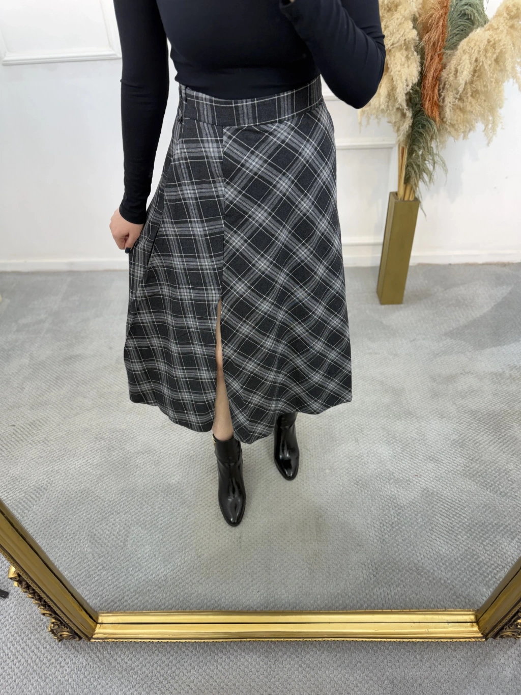 Mosa Yırtmaç Detaylı Ekose Etek