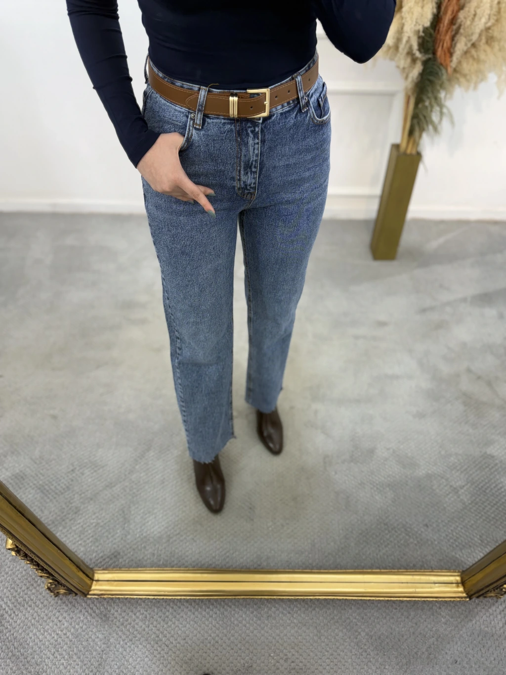 Newa Kemerli Likralı Kesik Paça Jean