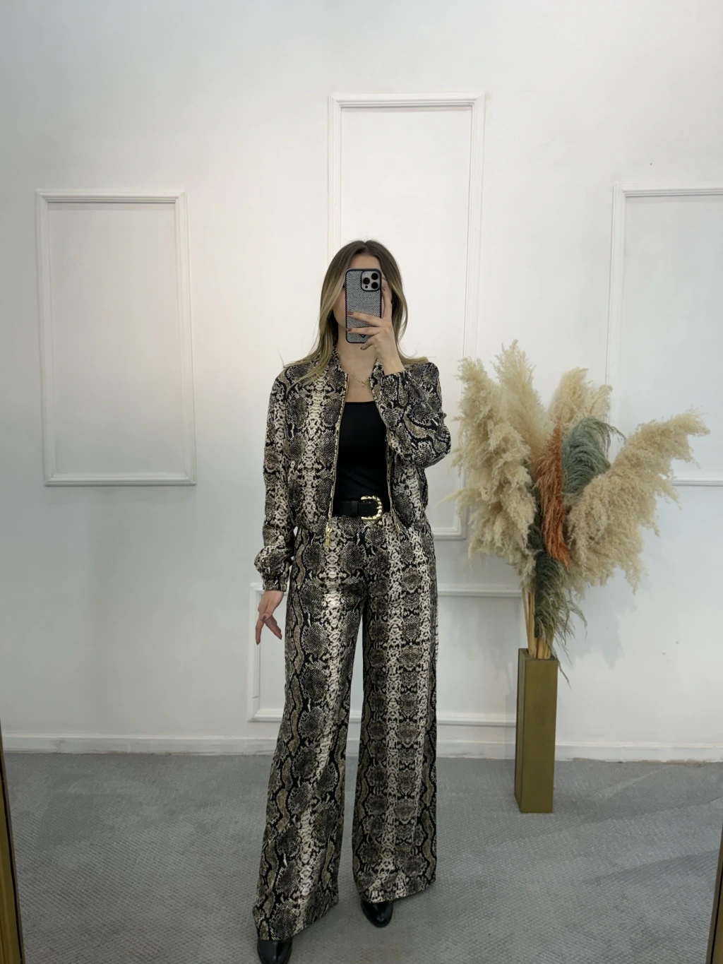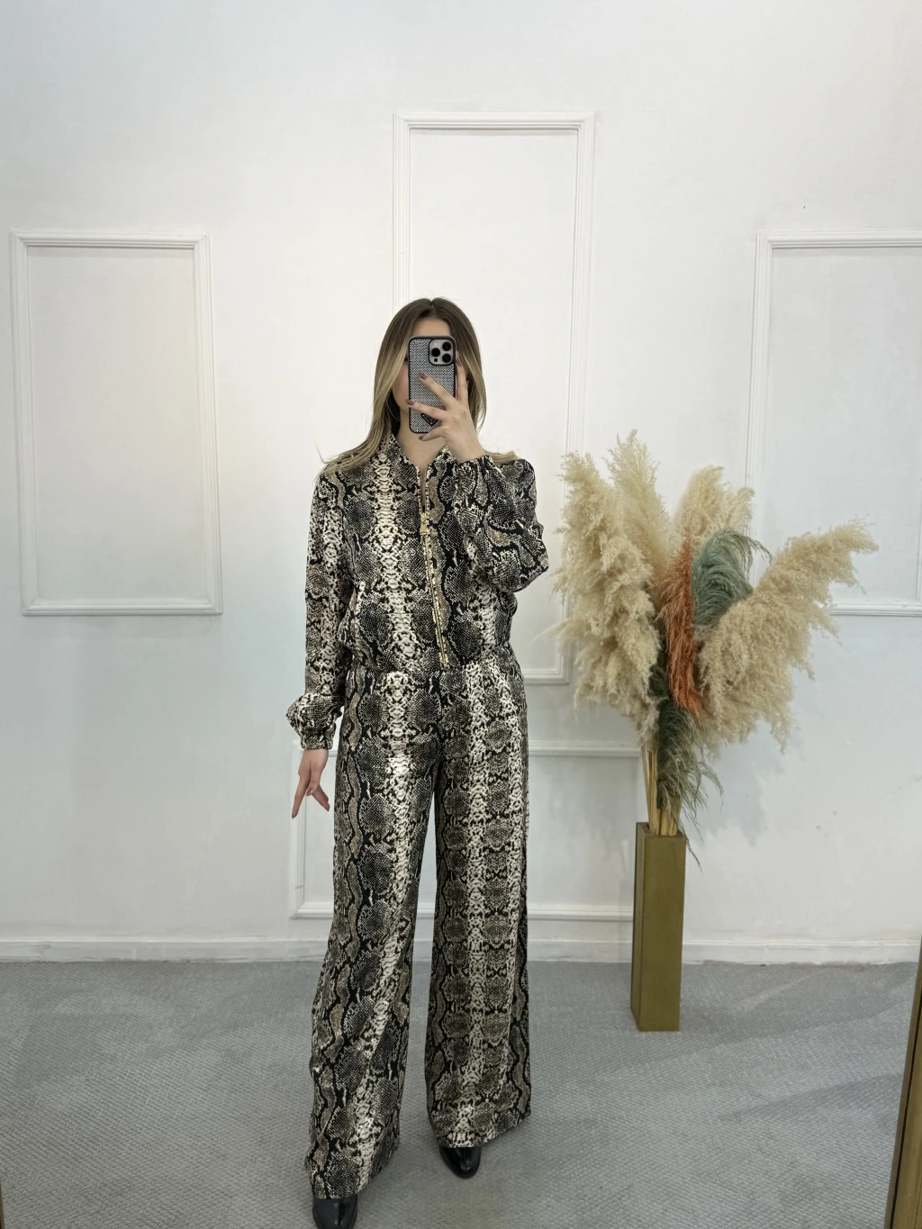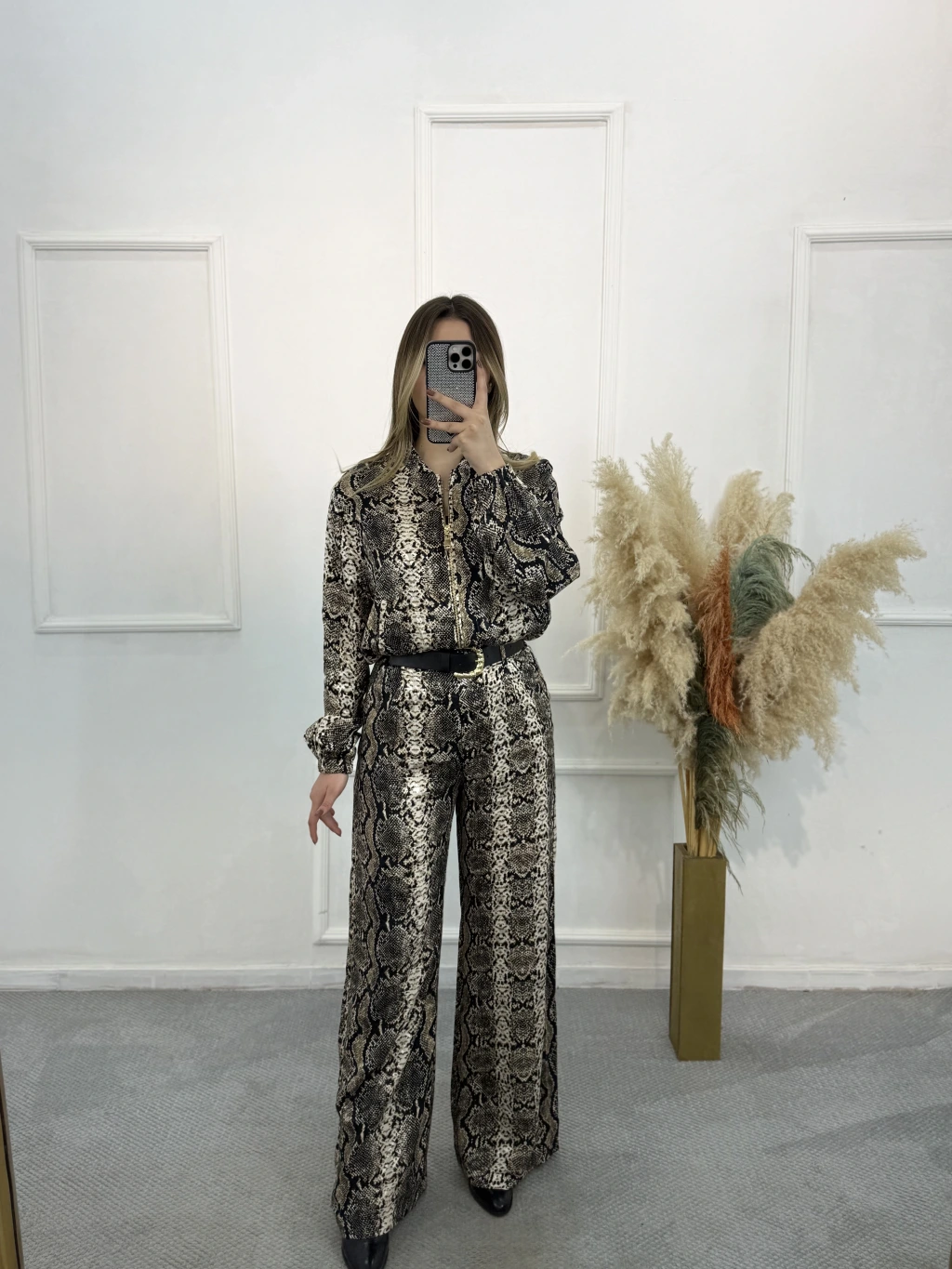 Priste Yılan Desenli Saten İkili Takım