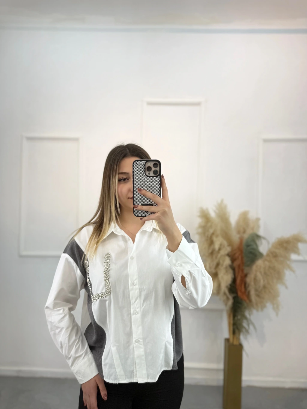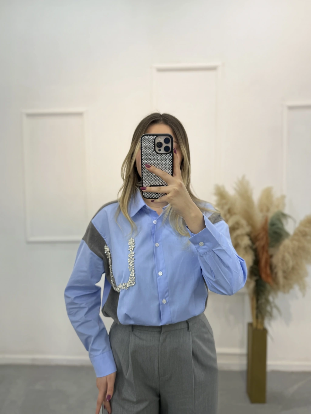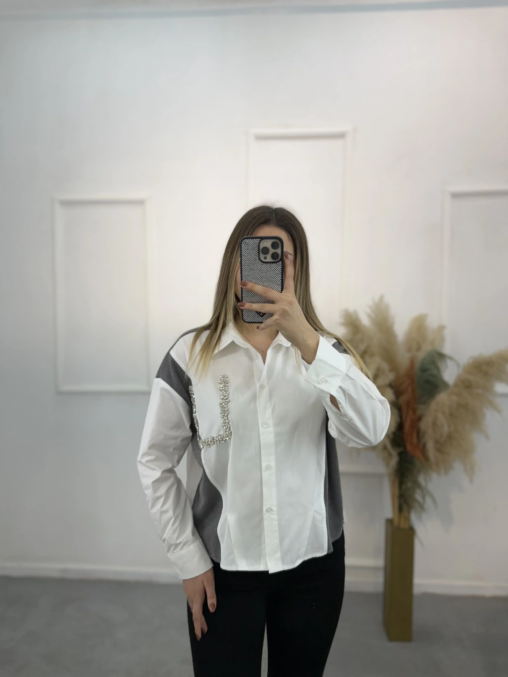 Triko Poplin Taş Detaylı Gömlek