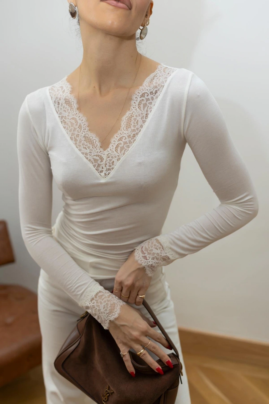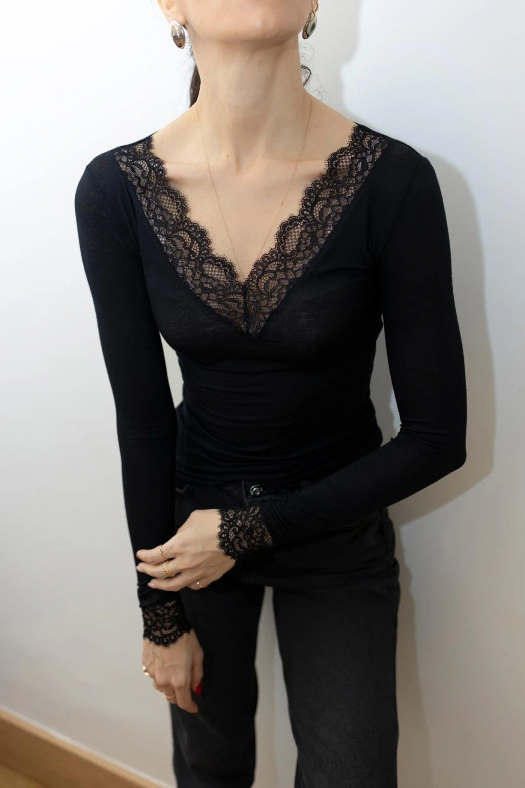 V Yaka Dantelli Bluz