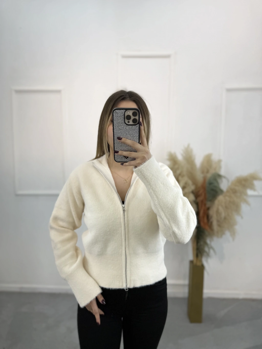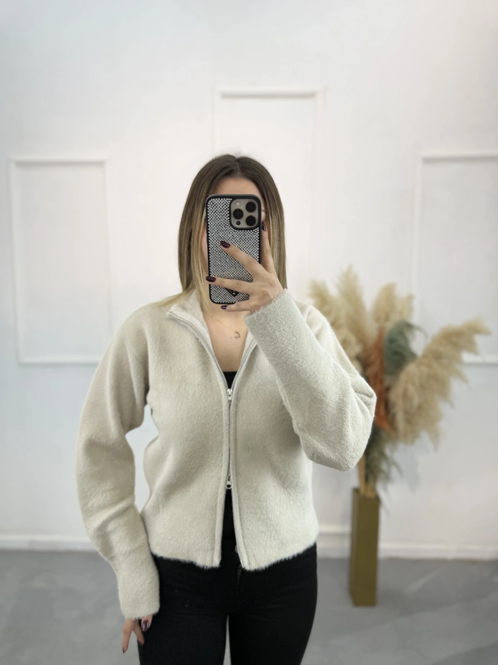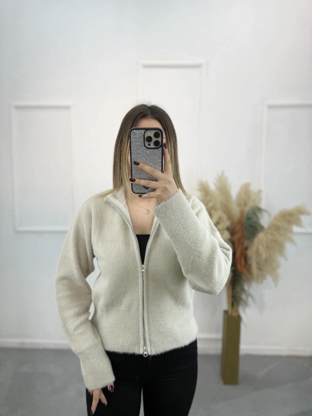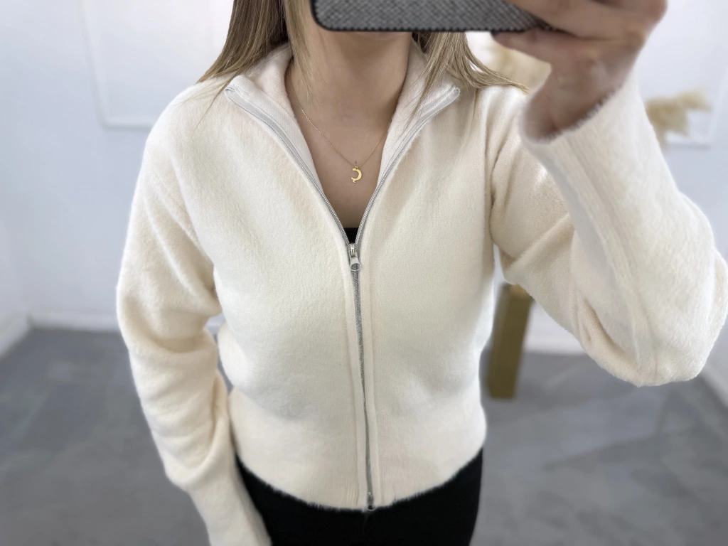 Vinta Çift Fermuarlı Tüylü Hırka