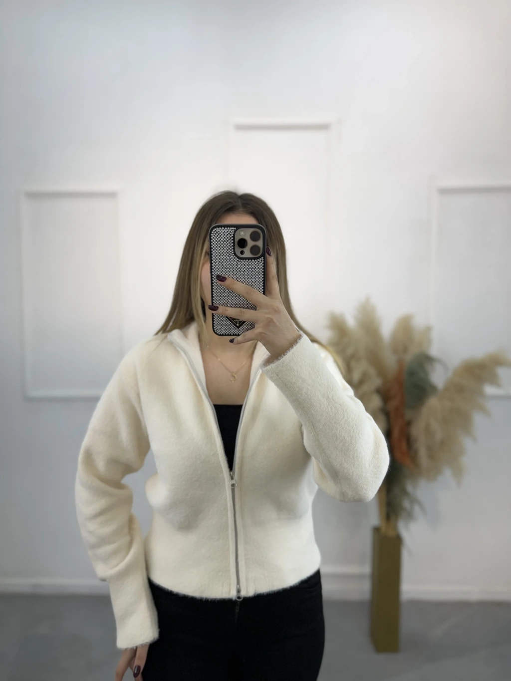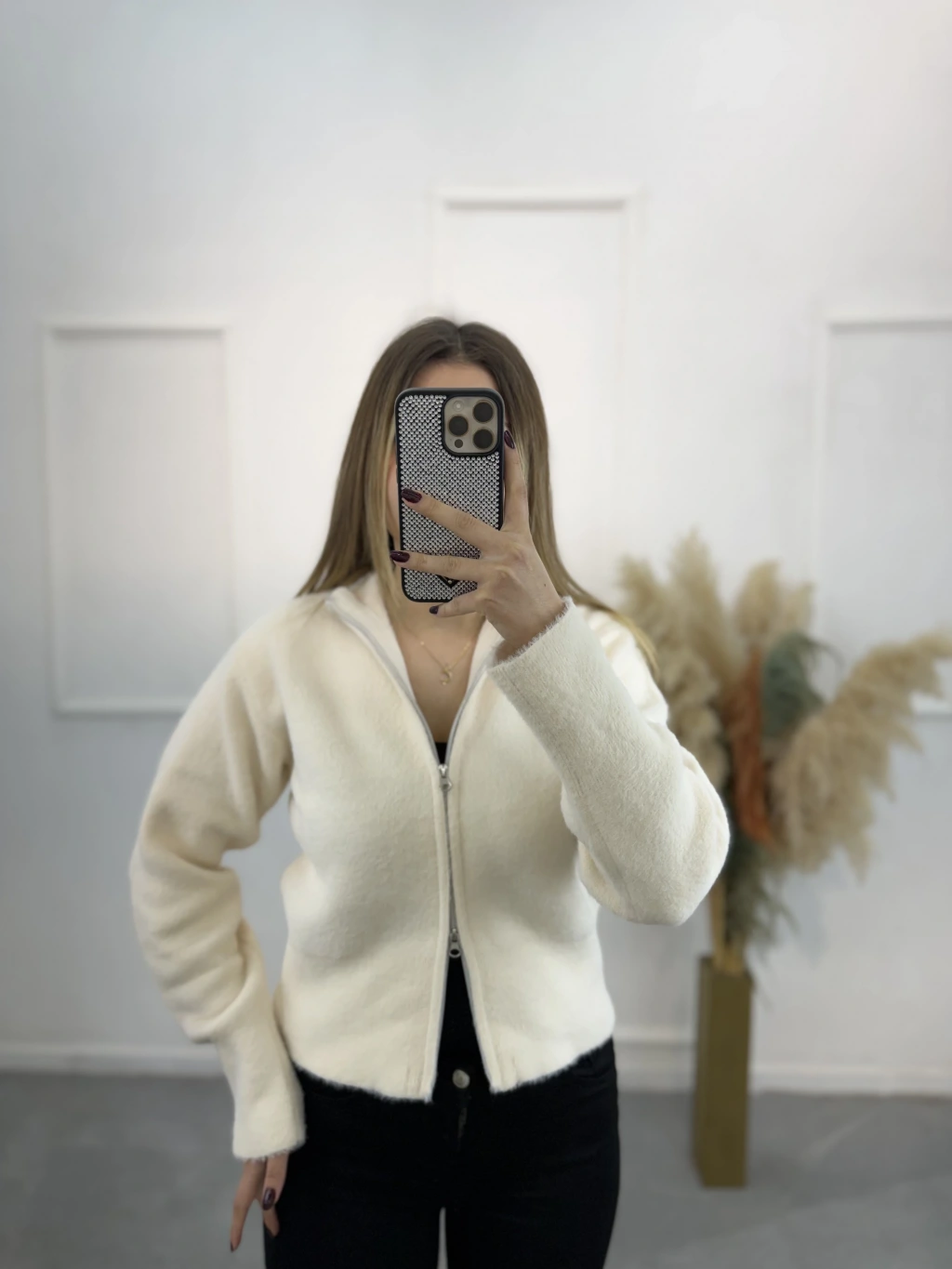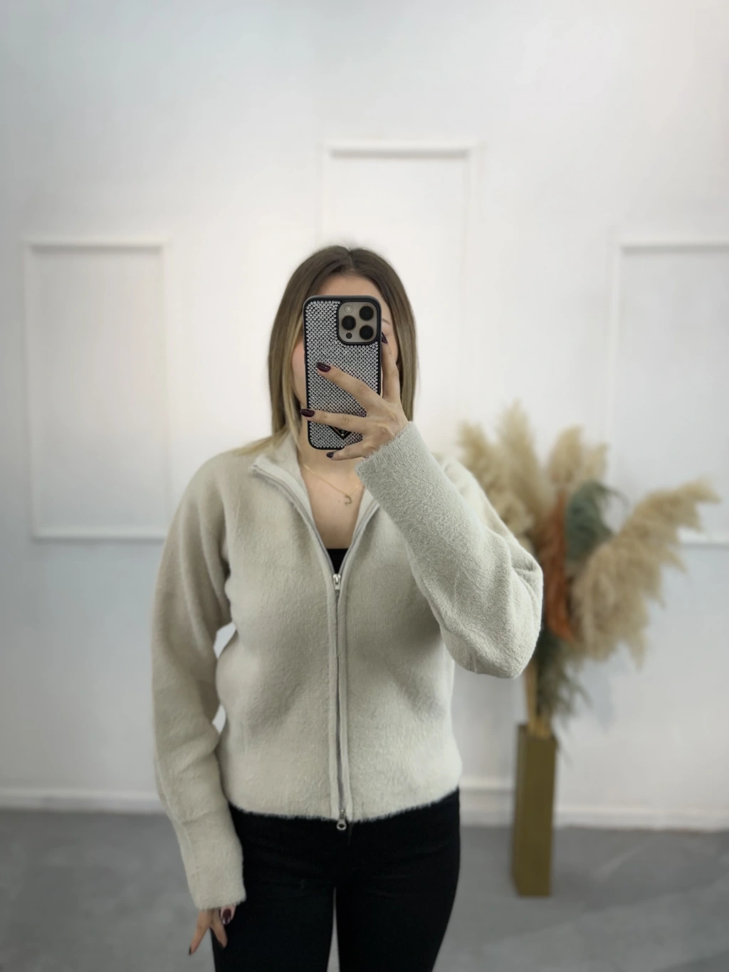 Vinta Çift Fermuarlı Tüylü Hırka