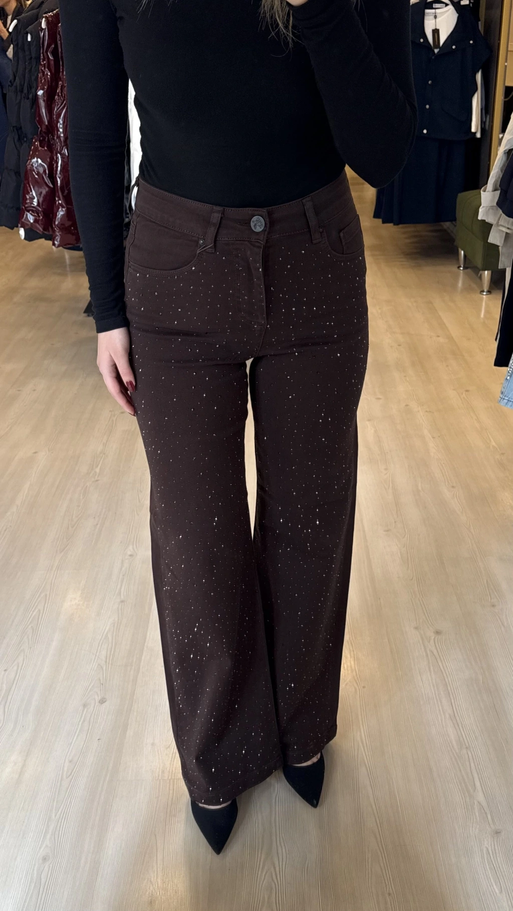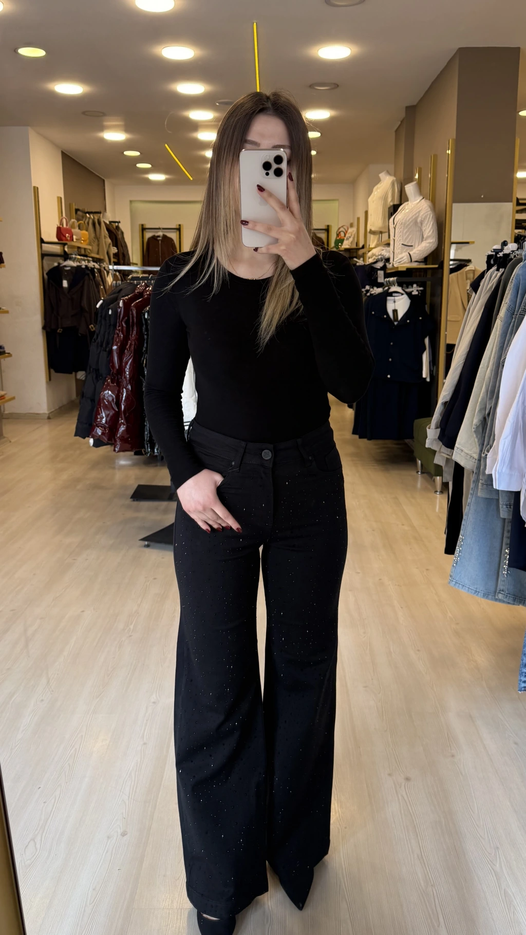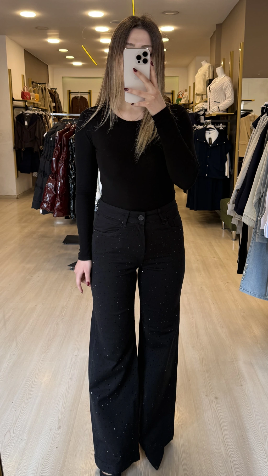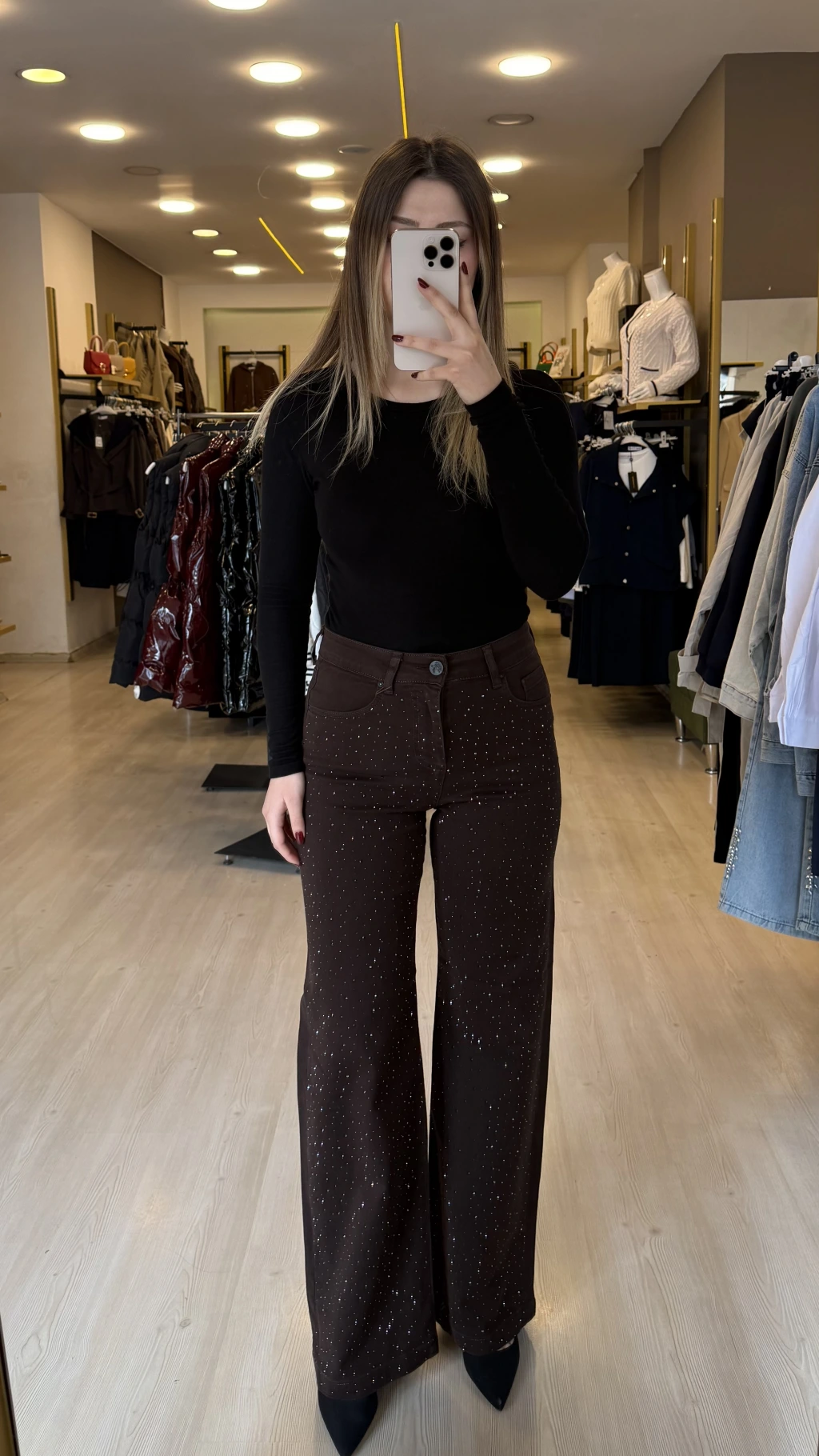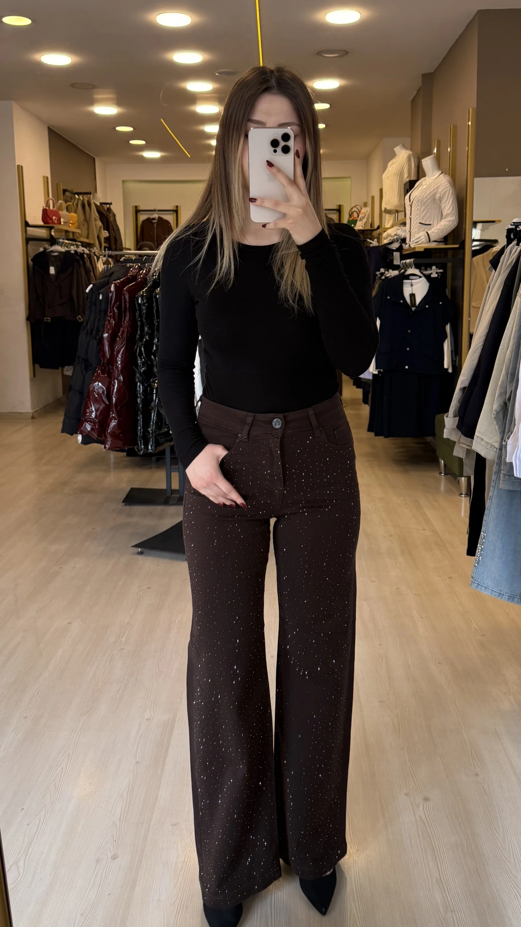 Wiks Likralı Dökme Taşlı Palazzo Jean
